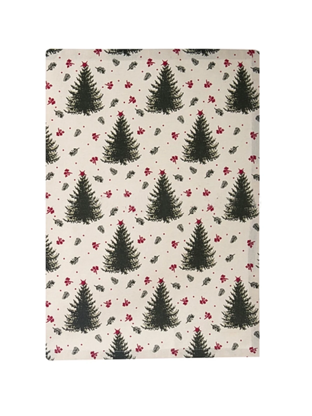 Bring Christmas into your kitchen in style! This 70% cotton, 30% synthetic fiber tea towel features a cream background and cheerful green tree print, perfect for adding a festive touch to your home.