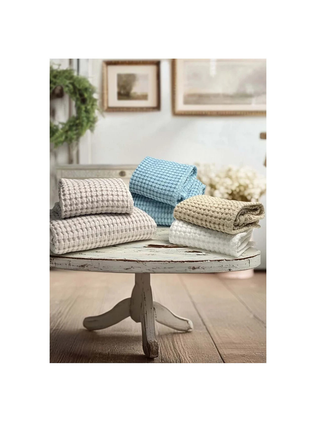 A pair of 100% cotton towels from the Nido Apone collection, soft, absorbent, and durable. Available in two sizes, 40x60 cm and 60x110 cm, with a weight of 450 GSM for superior comfort.