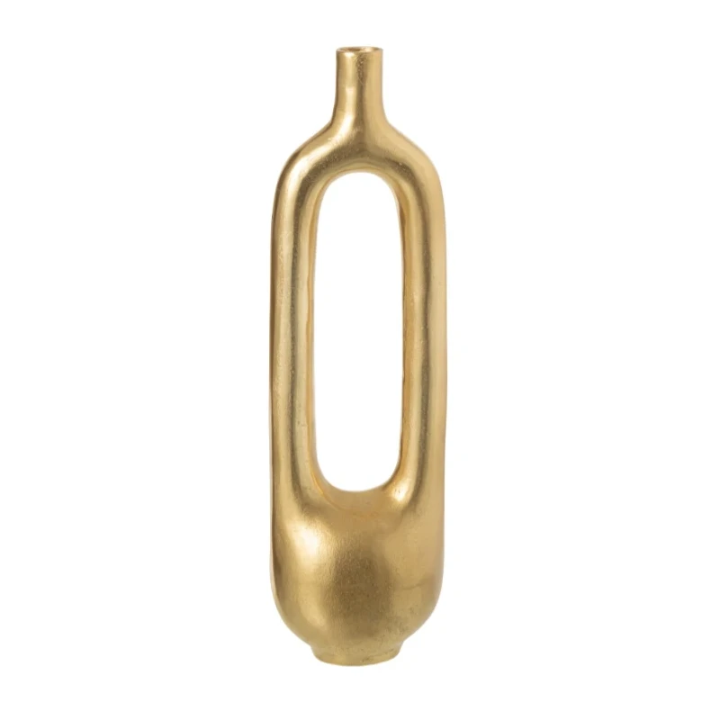 With its dramatic presence and high-quality aluminum craftsmanship, the Hollow-Interior Vase in Gold is more than just an accessory, but a design piece that adds character and personality to living rooms, entryways, and other spaces.