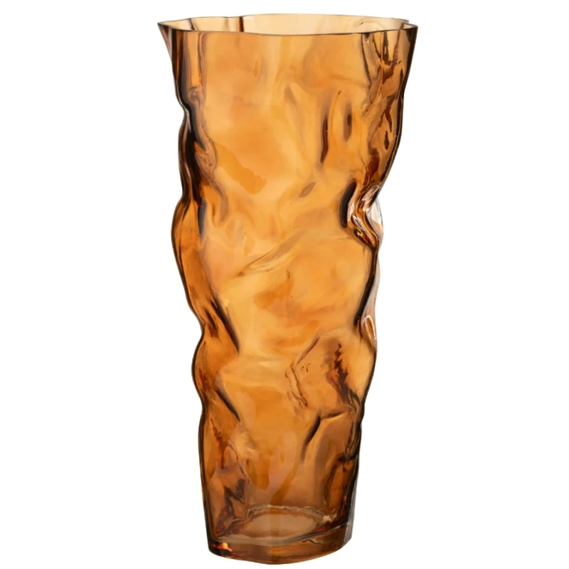 Glass vase with a caramel crackle finish, 38 cm tall. Its modern, textured design makes it perfect for floral arrangements or as an elegant interior decoration.