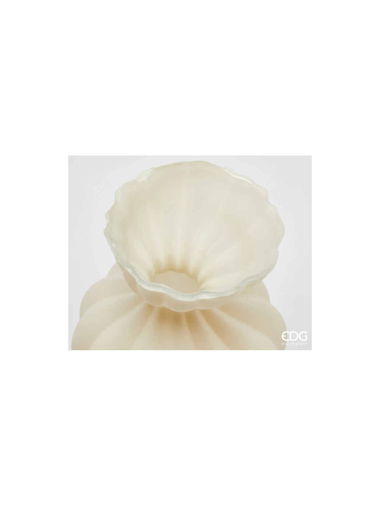 The Flow Sinuos ivory vase, 30.5 cm tall and 19.5 cm in diameter, is elegant and modern, ideal for decorating any space with style. Crafted from high-quality glass and packaged in a waterproof gift box, it combines refined design and practicality.