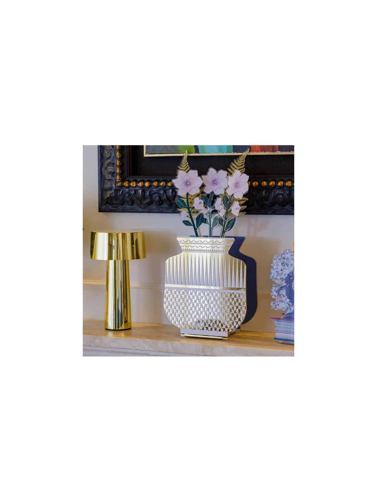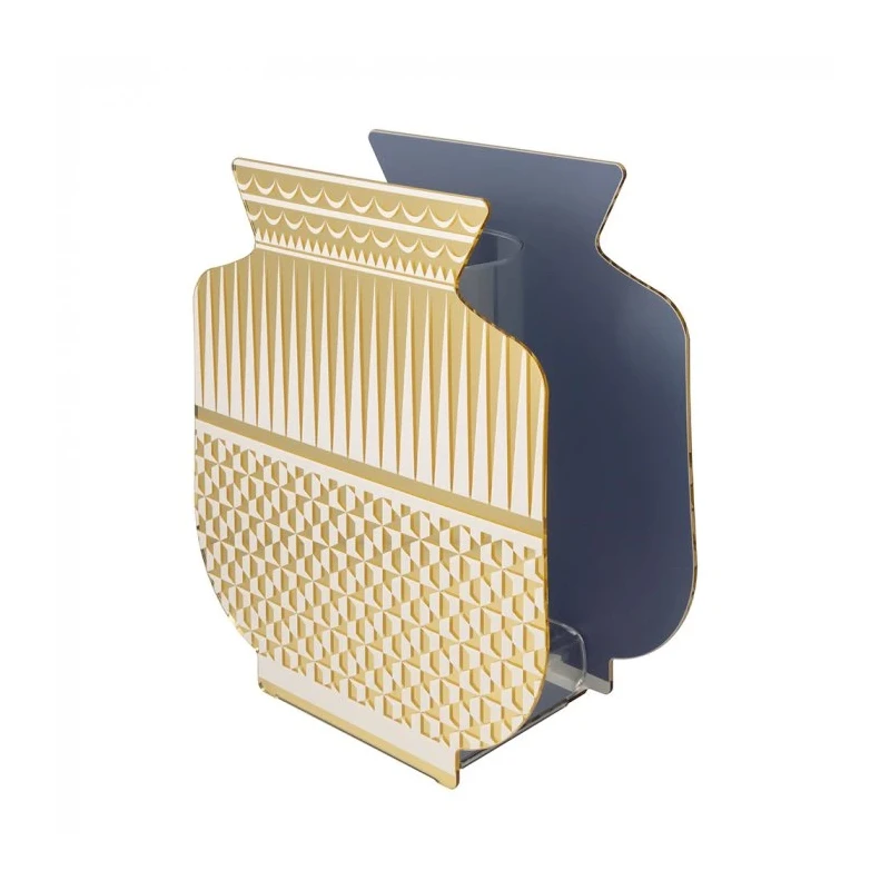 Discover the contemporary charm of the Fenice Oslo Vase, a design object that perfectly balances craftsmanship, light, and color. Crafted from acrylic crystal using a meticulous digital printing and hand-folding process, this vase is an example of Made in Italy excellence, capable of transforming any space with elegance and originality. The Oslo variant stands out for its warm, golden hues, inspired by Nordic light and Scandinavian landscapes. The soft, luminous hues blend harmoniously with any decor, making the vase a discreet yet impactful centerpiece, perfect for modern living rooms, professional studios, or reception areas.