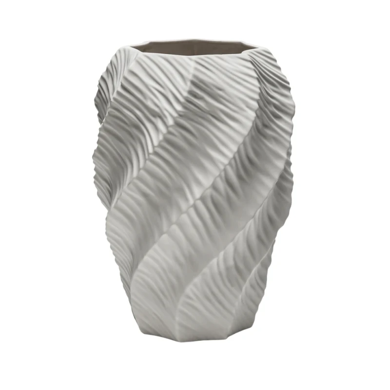 The Onde vase from the Flussi collection by Henriette. Made of matte white porcelain with a glazed interior, it combines sinuous design and functionality: it can hold liquids.