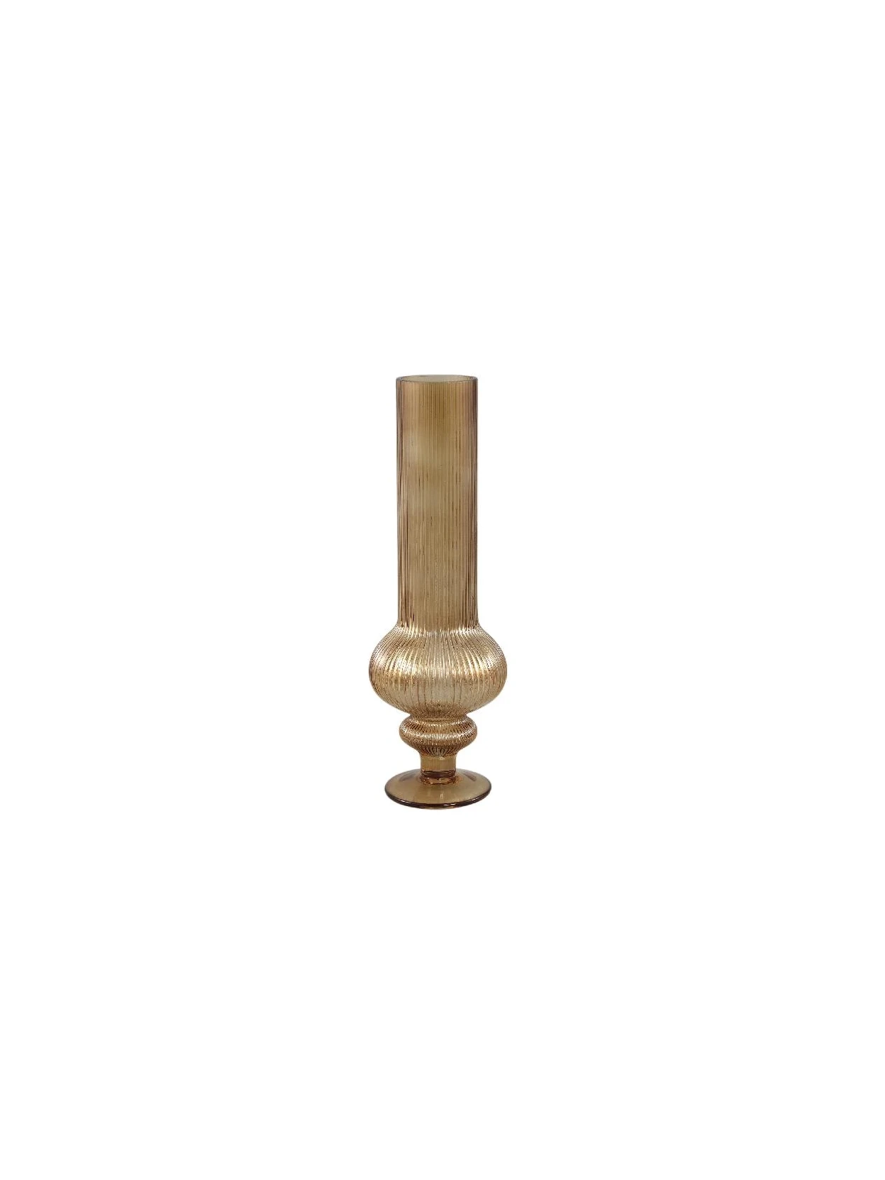 PTMD - Keala Round Ribbed Glass Vase - Amber