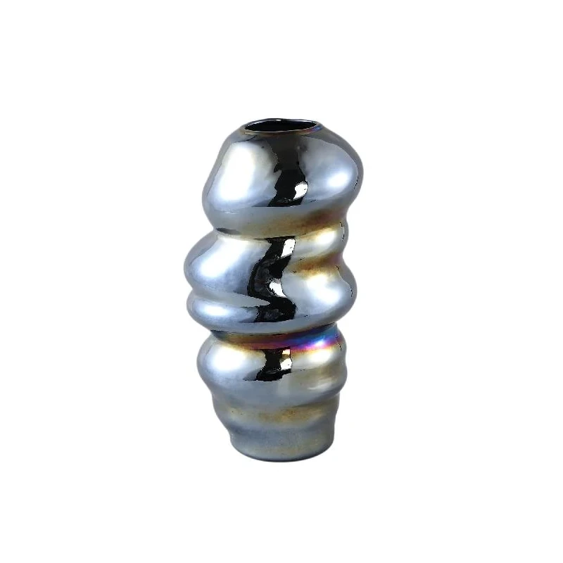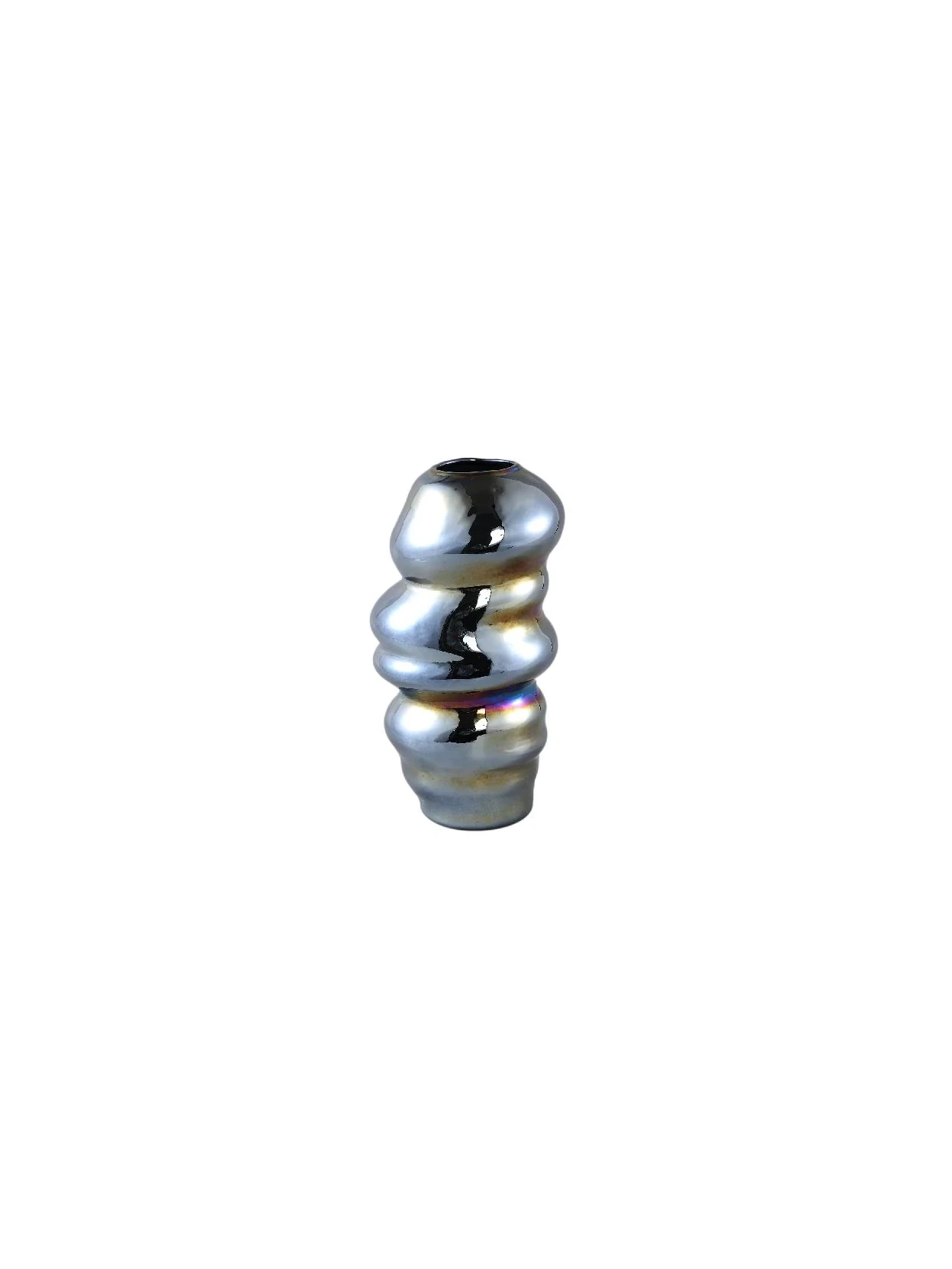 Orietta blue blown glass vase with an oily effect and a wavy finish. Handcrafted, this 31.5 cm high round vase combines elegance and craftsmanship to enhance any modern or classic setting.