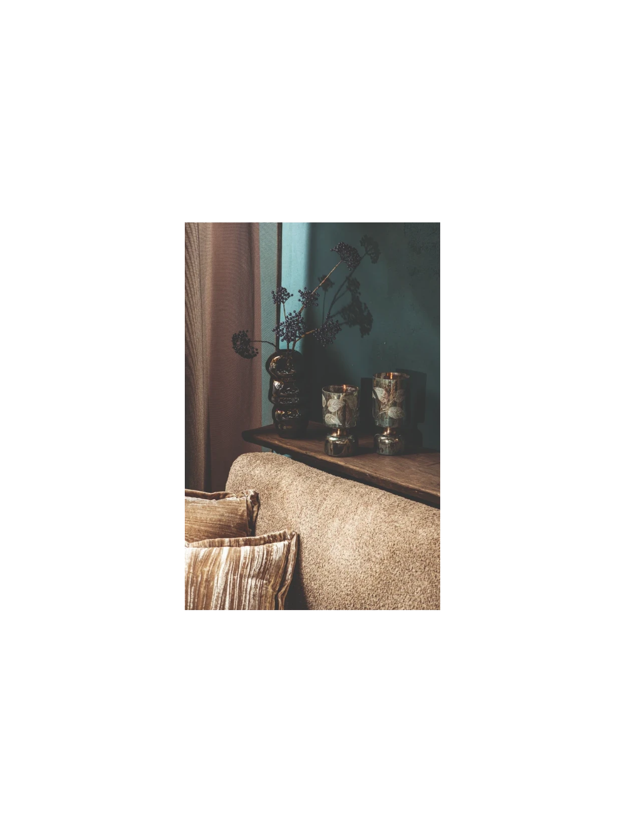 The Orietta Blue glass vase by PTMD is a charming decorative accessory, perfect for adding a touch of color and sophistication to your home. Handcrafted from solid glass, it features a wavy surface and a unique oily effect that creates beautiful plays of light. With its round shape and dimensions of Ø 17 x H 31.5 cm, it is ideal for holding cut flowers, decorative branches, or for displaying as a unique piece on tables, shelves, or consoles.