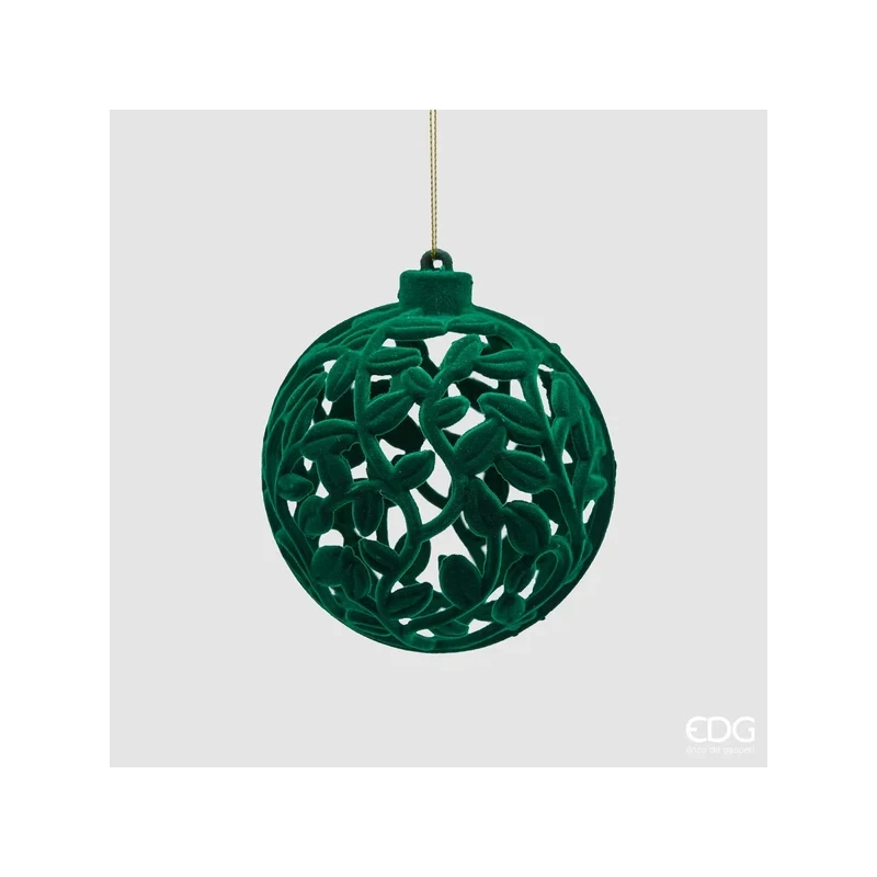 Elegante pallina di natale decorativa realizzata in plastica rivestita in velluto color verde. Perfetta per decorare alberi di Natale, ghirlande o centrotavola.