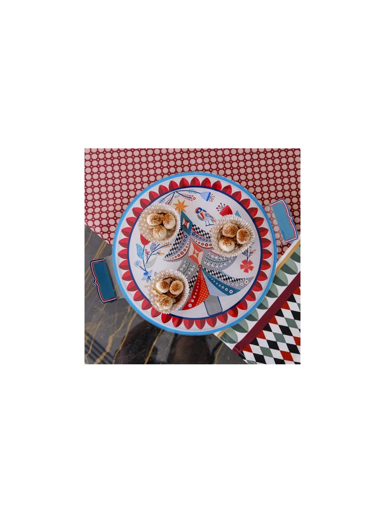 Il portatorta Albero di Vesta è il nuovo must-have per la tua tavola festiva. Più di un semplice vassoio, questo oggetto di design porta eleganza, praticità e stile, arricchendo la mise en place con la grafica dell’albero di Natale. Perfetto per servire dolci, panettoni o centrotavola, è coordinabile con tutta la Christmas Collection Vesta e rappresenta un regalo di classe e originale.