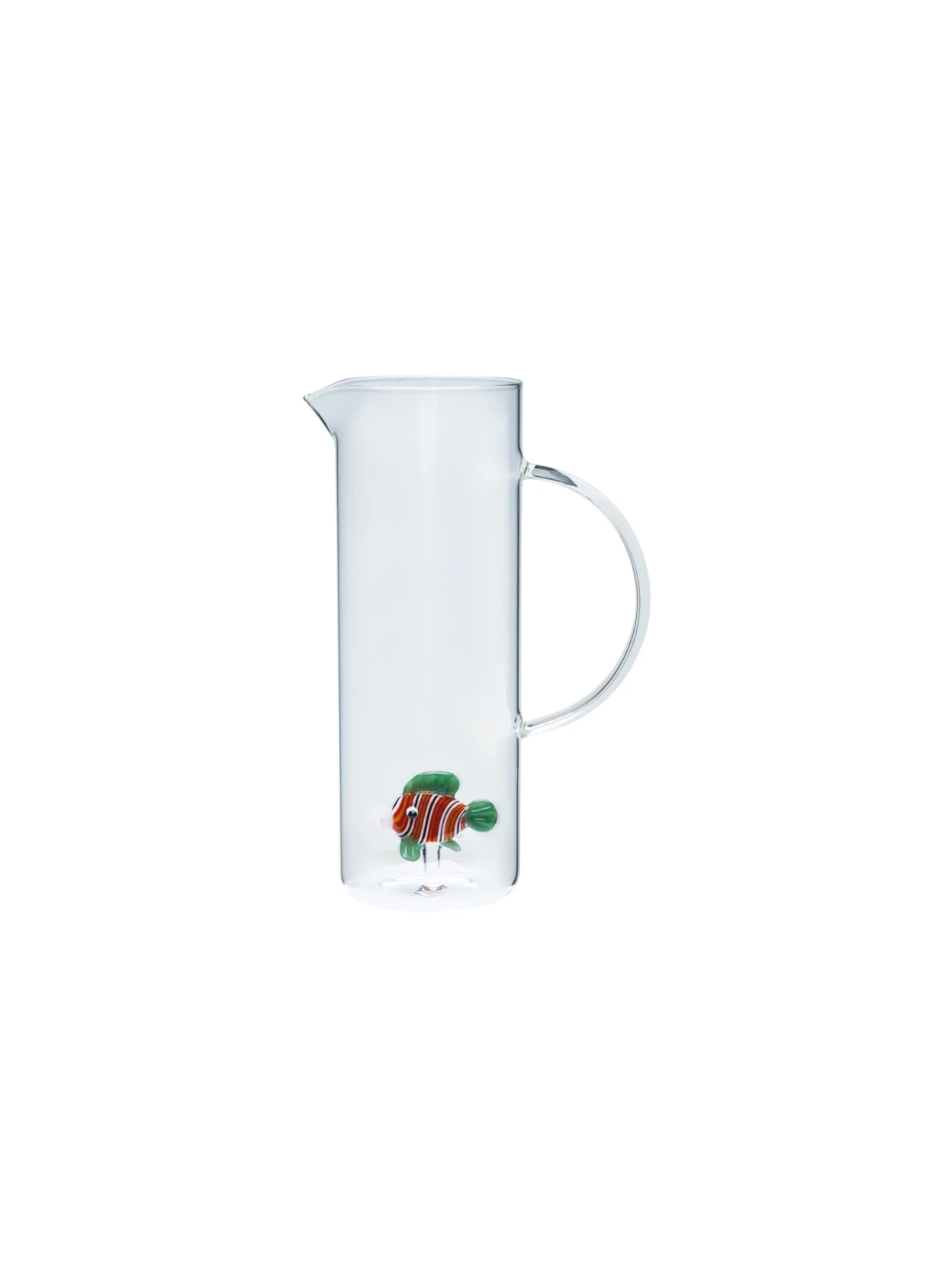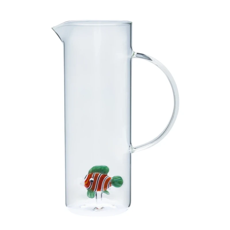 Brocca Rainbowfish di Henriette in borosilicato trasparente con un vivace pesciolino colorato all’interno. Resistente, leggera e lavabile in lavastoviglie, perfetta da abbinare al set di bicchieri della stessa collezione.