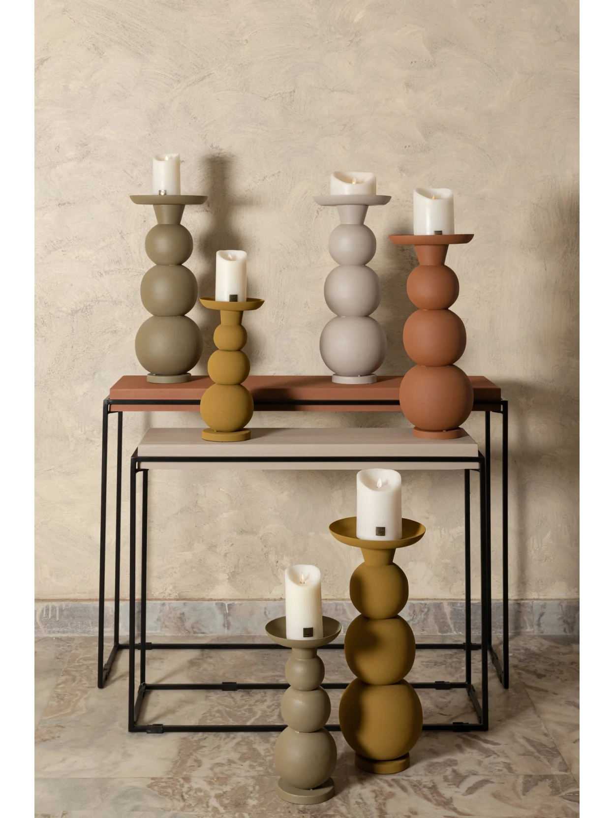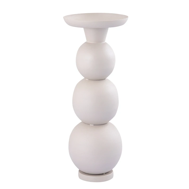 Il portacandela Shannan di PTMD in tonalità crema è elegante e minimalista. La forma a sfere impilate e l’altezza di 52,5 cm lo rendono un complemento raffinato per decorare ogni ambiente.