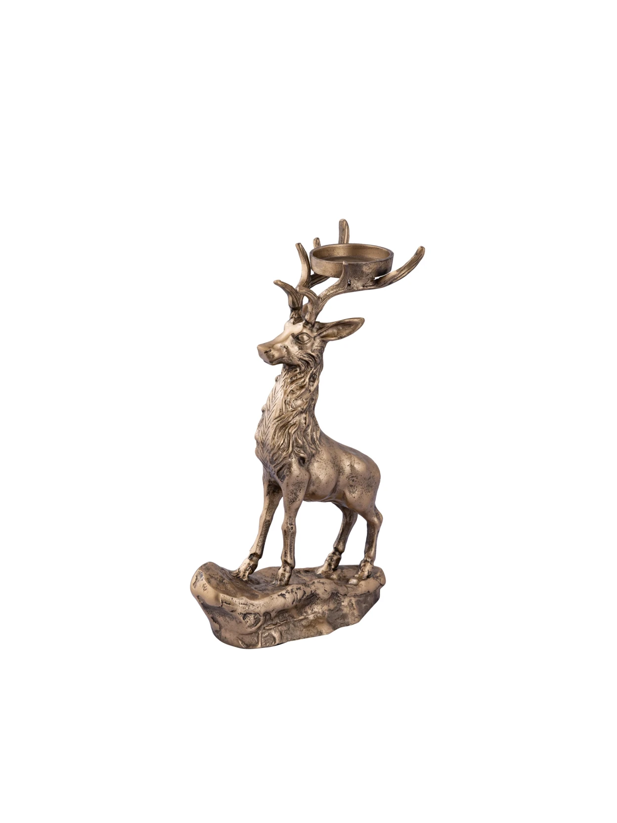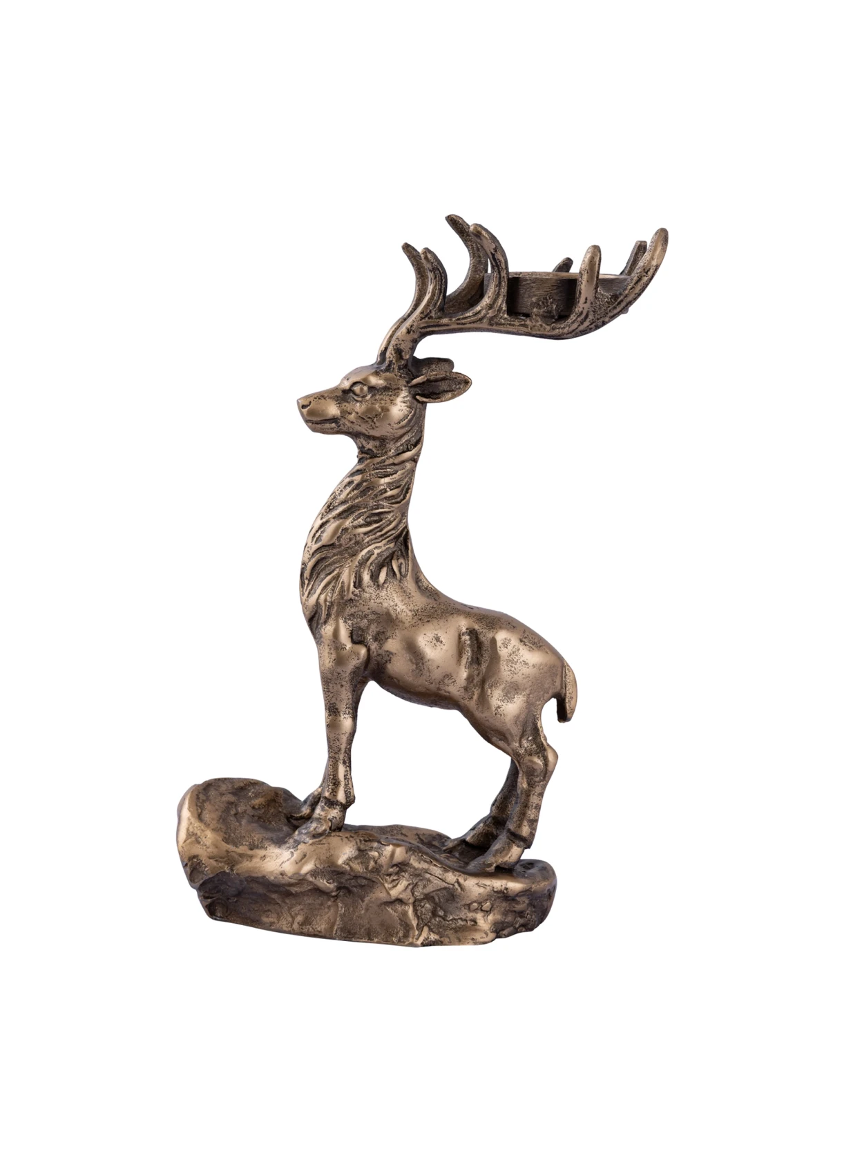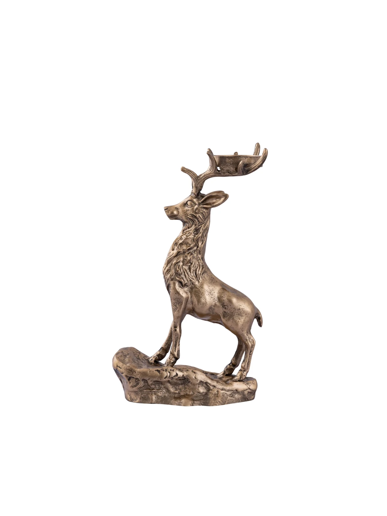 Portacandela Cervo Dixon di PTMD, realizzato in alluminio di alta qualità in finitura ottone. Un elegante complemento d’arredo che dona calore e carattere a ogni ambiente.