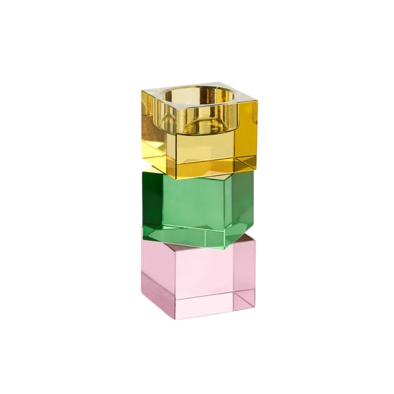Il candeliere in cristallo colorato di Ottaviani medio, alto 11,7 cm e con base 5x5 cm, è un raffinato elemento decorativo che unisce arte e design. I tre quadrati in cristallo: rosa, verde e giallo creano un armonioso equilibrio cromatico, riflettendo la luce con eleganza e vivacità. Perfetto per ambienti moderni o per aggiungere un tocco di colore sofisticato a spazi classici, questo candeliere rappresenta la qualità e l’eccellenza del design Ottaviani.