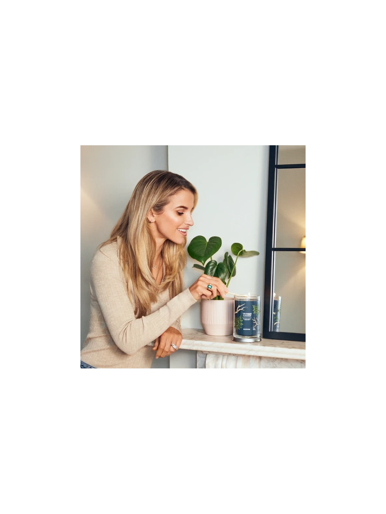 Candela in giara grande dalla fragranza che ricrea la magia di una passeggiata nella foresta dopo la pioggia, con note fresche di pompelmo e fiori di mandarino che si uniscono al calore avvolgente dell’ambra, per un’atmosfera rigenerante e serena.