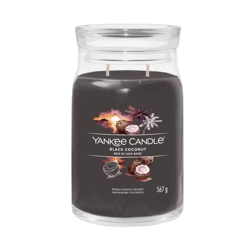 Black Coconut di Yankee Candle è una candela in giara grande dalla fragranza floreale che riesce a trasportarti in un angolo di paradiso catturando la magia di un tramonto esotico. Le note fruttate di ananas e cocco cremoso si fondono con il cuore avvolgente dei fiori di cocco, per poi adagiarsi su un fondo delicato di muschio, legni pregiati e note talcate. Un’armonia olfattiva che dona alla tua casa un’atmosfera di serenità sofisticata, come una serata d’estate su una spiaggia lontana.
