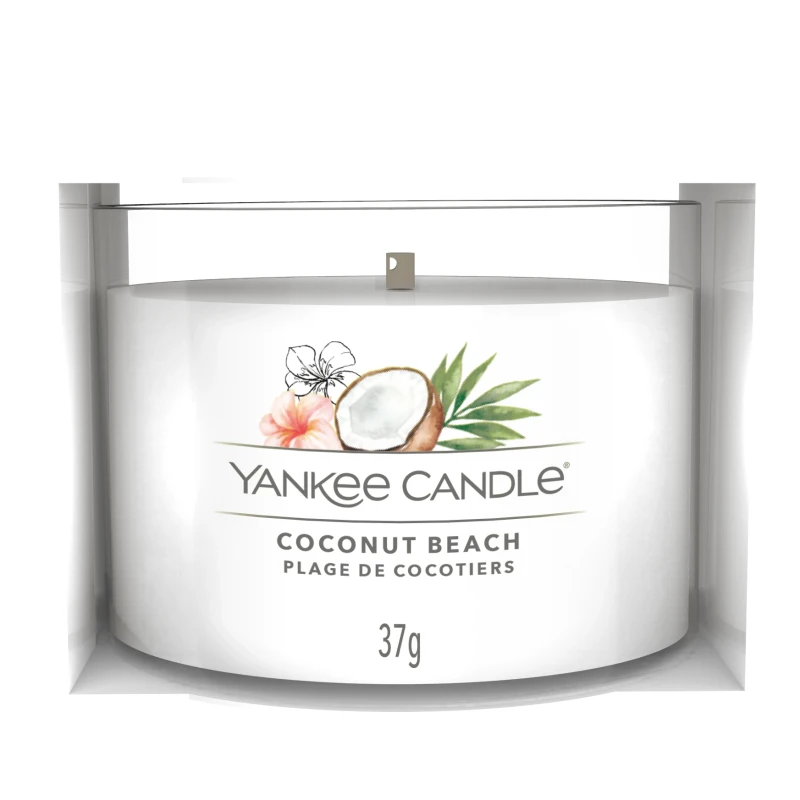 Coconut Beach di Yankee Candle è una candela votiva in vetro; un viaggio olfattivo verso i tropici, dove il sole accarezza la pelle e l’aria è intrisa di dolcezza. É una fragranza che evoca l’atmosfera rilassata di una spiaggia tropicale, tra palme ondeggianti e sabbia dorata. Le note calde e cremose del cocco sono le protagoniste, portando con sé una sensazione di comfort e vacanza. Si uniscono alle sfumature succose dell’ananas, che aggiungono un tocco frizzante e solare, mentre la vaniglia morbida e vellutata avvolge il tutto in una dolcezza avvolgente e sensuale. Il risultato è un profumo ricco ma equilibrato, perfetto per chi desidera portare nella propria casa un’atmosfera estiva, esotica e rilassante tutto l’anno. Coconut Beach è una coccola fruttata che parla di libertà, leggerezza e benessere.