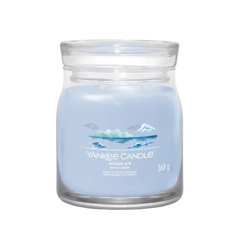 Ocean Air di Yankee Candle è una candela in giara media che cattura l’essenza di un pomeriggio perfetto al mare: l’aria salmastra e cristallina si intreccia con note ozonate che evocano pulizia e libertà. Il cuore fiorito di gelsomino dona un tocco delicato e raffinato, mentre l’ambra bianca e il legno di sandalo avvolgono i sensi in una scia calda, morbida e rilassante. Un’esperienza olfattiva rigenerante, che trasforma ogni ambiente in un rifugio costiero senza tempo.