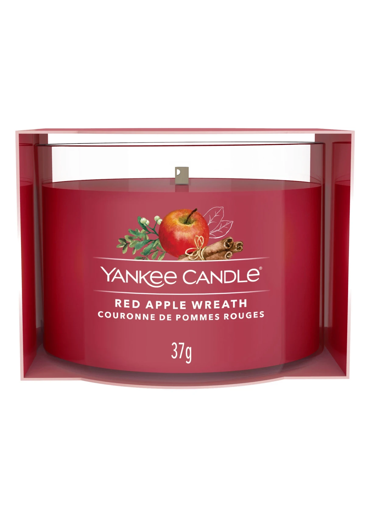 Red Apple Wreath di Yankee Candle è una candela votiva in vetro che accoglie con il calore tipico delle feste. Le note di testa di mele dorate, foglia di cannella e chiodi di garofano aprono la fragranza con un tocco speziato e fruttato. Il cuore di scorza di mela, noci tritate e zucchero di canna dona un senso di dolce tradizione, mentre il fondo cremoso di ambra, burro fuso, sciroppo d’acero e vaniglia avvolge l’ambiente in un abbraccio festoso. Una fragranza fruttata che celebra il piacere di tornare a casa e vivere la magia del Natale con chi ami.