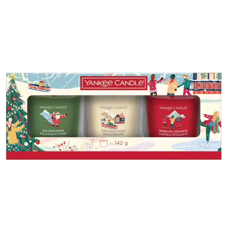 Porta la magia del Natale a casa con questo elegante set regalo Yankee Candle. Include 3 candele Tumbler nelle fragranze festive: Balsam & Cedar, Christmas Cookie e Sparkling Cinnamon. Perfetto per un'atmosfera calda e accogliente.