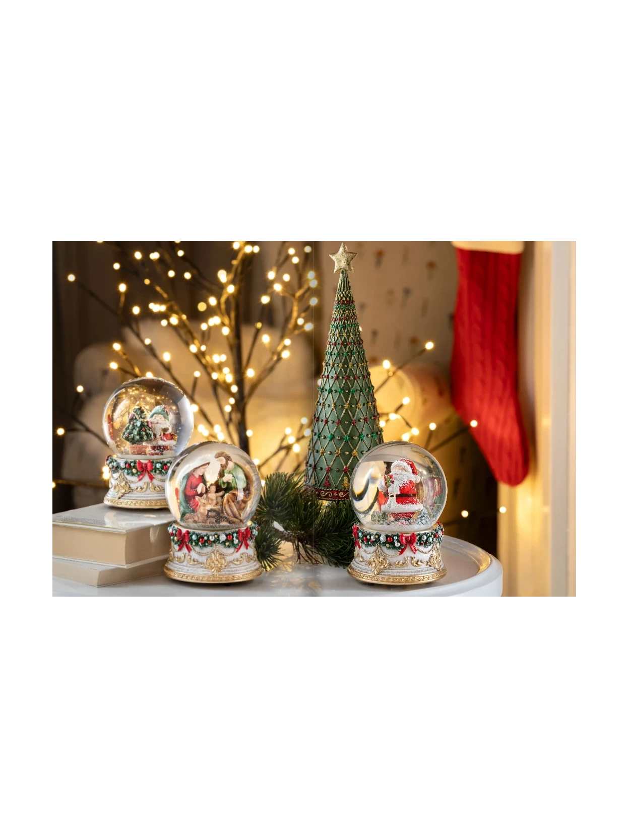 Porta la magia della Natività in casa con il Globo Carillon di Henriette della Collezione Prestige. Realizzato in vetro e resina dipinta a mano, questo elegante globo di 10,5 × 14,5 cm rappresenta la Sacra Famiglia accompagnata da una melodia dolce e avvolgente. Perfetto come decorazione natalizia o come regalo raffinato, crea un’atmosfera di calma, sacralità e poesia in ogni ambiente.