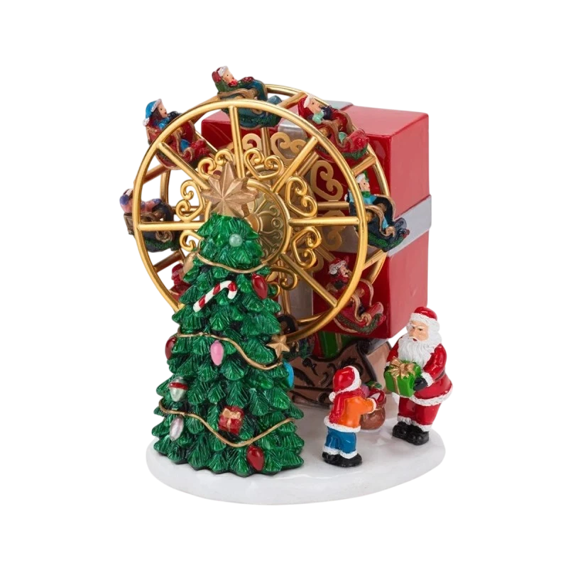 Il Carillon Ruota Panoramica con Albero di Henriette è una creazione raffinata che racchiude tutta la magia delle feste. Realizzata in resina dipinta a mano, questa ruota panoramica si anima dolcemente al suono di una melodia natalizia, diffondendo un senso di gioia e nostalgia che riporta ai ricordi più belli dell’infanzia. Al centro spicca un piccolo albero addobbato, simbolo di festa e tradizione, che arricchisce la scena con un tocco di eleganza. Ogni dettaglio è curato con passione dal brand Henriette, sinonimo di qualità e stile nelle decorazioni natalizie. Con le sue dimensioni compatte di 12x12 cm e un’altezza di 14 cm, si inserisce armoniosamente in qualsiasi ambiente, diventando il protagonista di vetrine, tavoli o angoli decorativi. La luce e il movimento donano vita alla scena, mentre il suono del carillon accompagna i momenti più speciali del Natale. Questo prezioso elemento d’arredo della collezione Prestige è perfetto per chi desidera un tocco di poesia e tradizione, capace di emozionare grandi e piccini e rendere ogni casa più accogliente durante le feste.