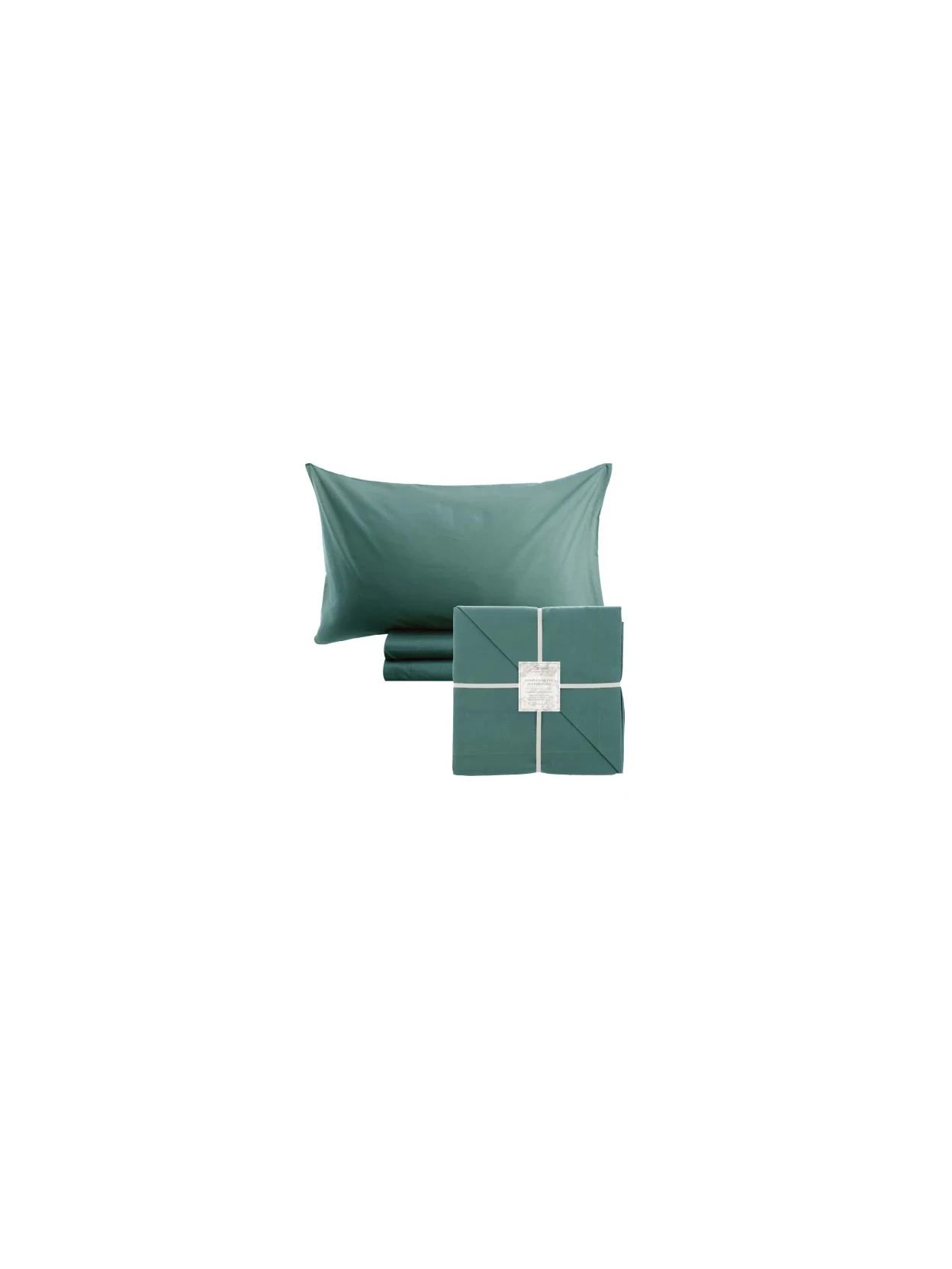 Set completo per letto matrimoniale con copriletto 245x300 cm, lenzuolo 180x200 cm e 2 federe 50x80 cm. Realizzato in 100% cotone italiano (Made in Italy), combina morbidezza, qualità e stile naturale in un elegante colore verde.
