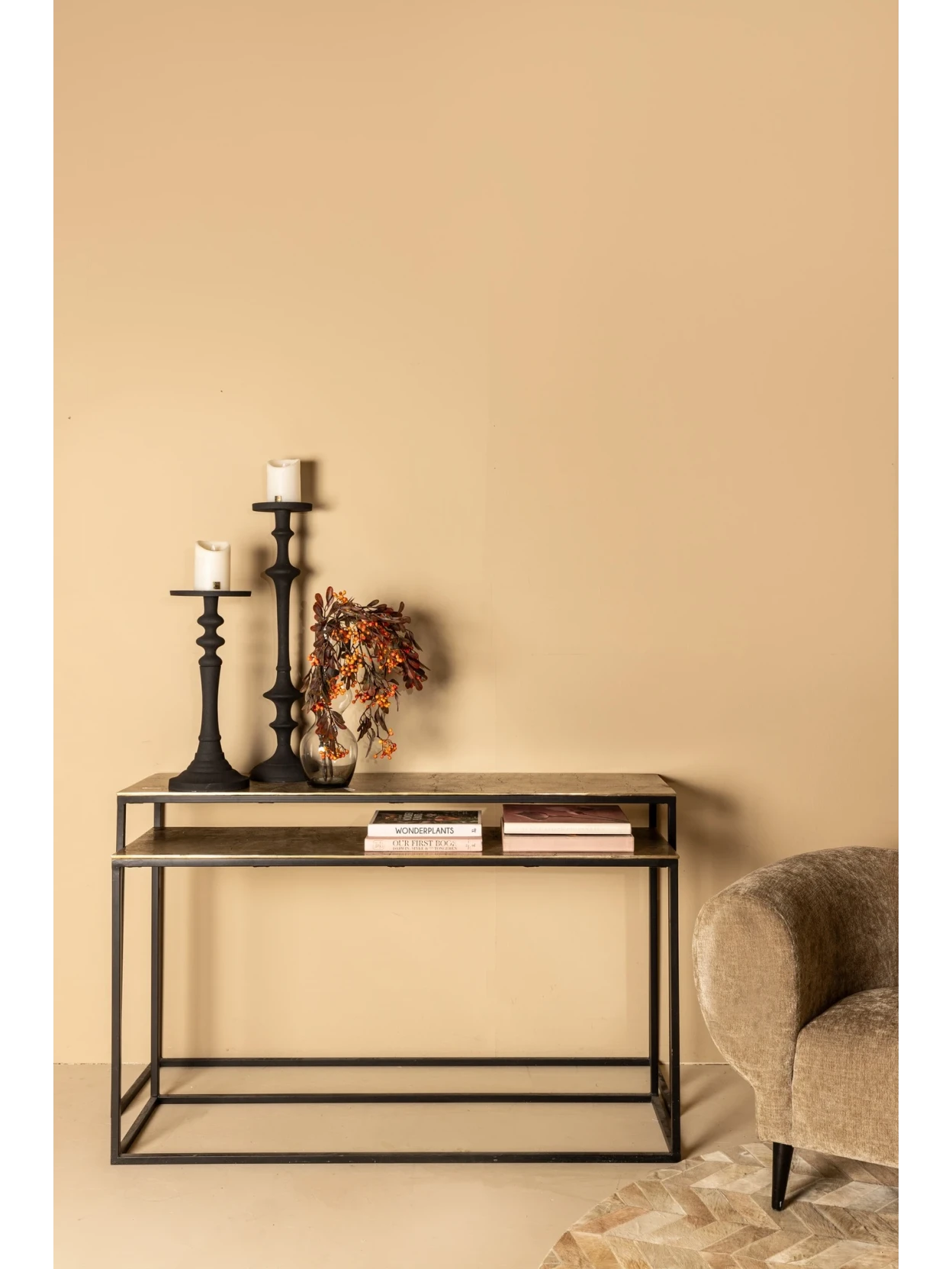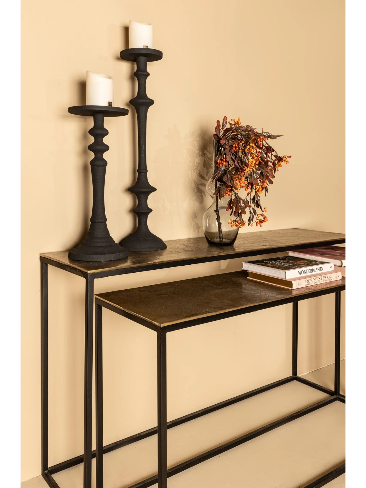 La consolle Kae firmata PTMD è un elemento d’arredo sofisticato che fonde stile contemporaneo e materiali di qualità. Il piano in finitura oro dona luminosità e carattere, mentre la solida base in metallo nero assicura stabilità e un contrasto di grande impatto visivo. Dalla linea rettangolare e dal design essenziale, questa consolle si inserisce perfettamente in ingressi, soggiorni o zone living dal gusto moderno. Perfetta per valorizzare accessori decorativi o creare un punto focale elegante, la consolle Kae è la scelta ideale per chi desidera un tocco di lusso discreto e attuale.