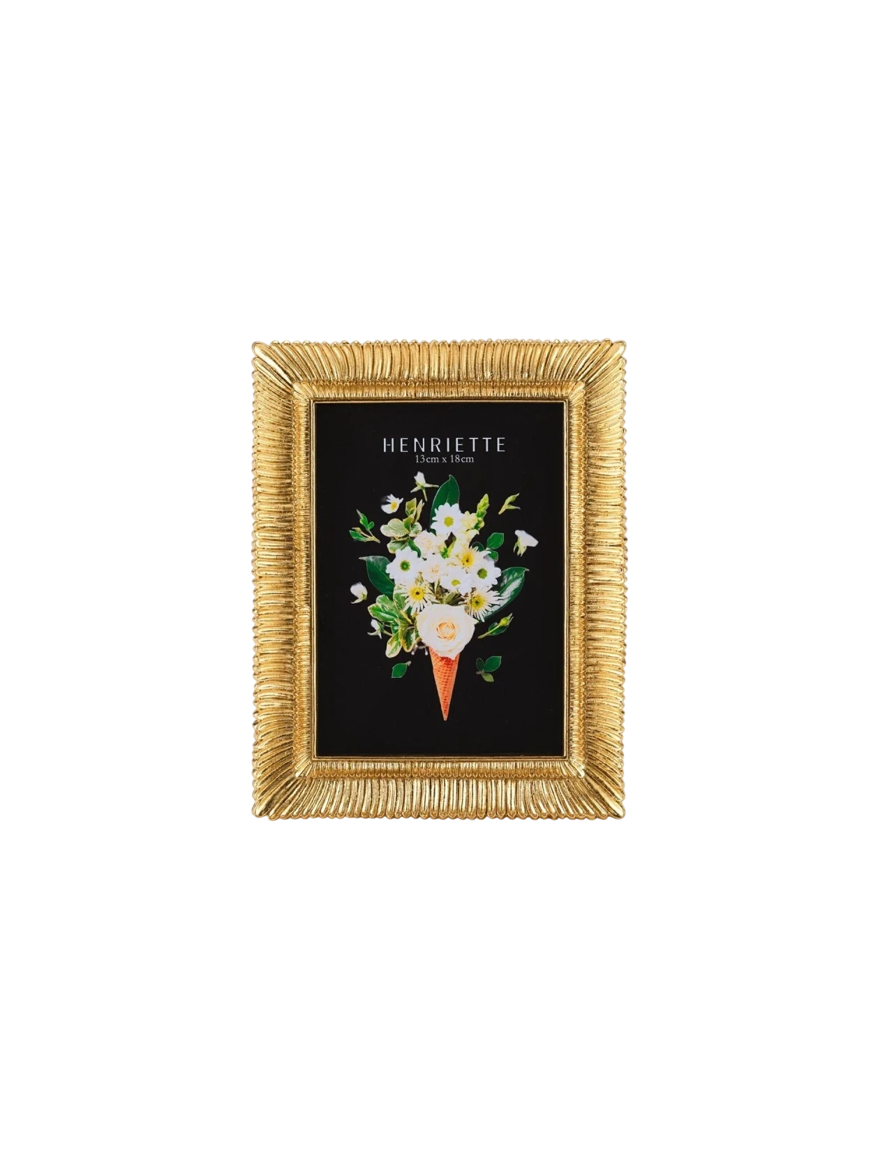 Cornice Plissé Oro Ostuni di Henriette in resina dipinta a mano. Elegante finitura dorata con effetto plissé, ideale per incorniciare i tuoi ricordi con stile.