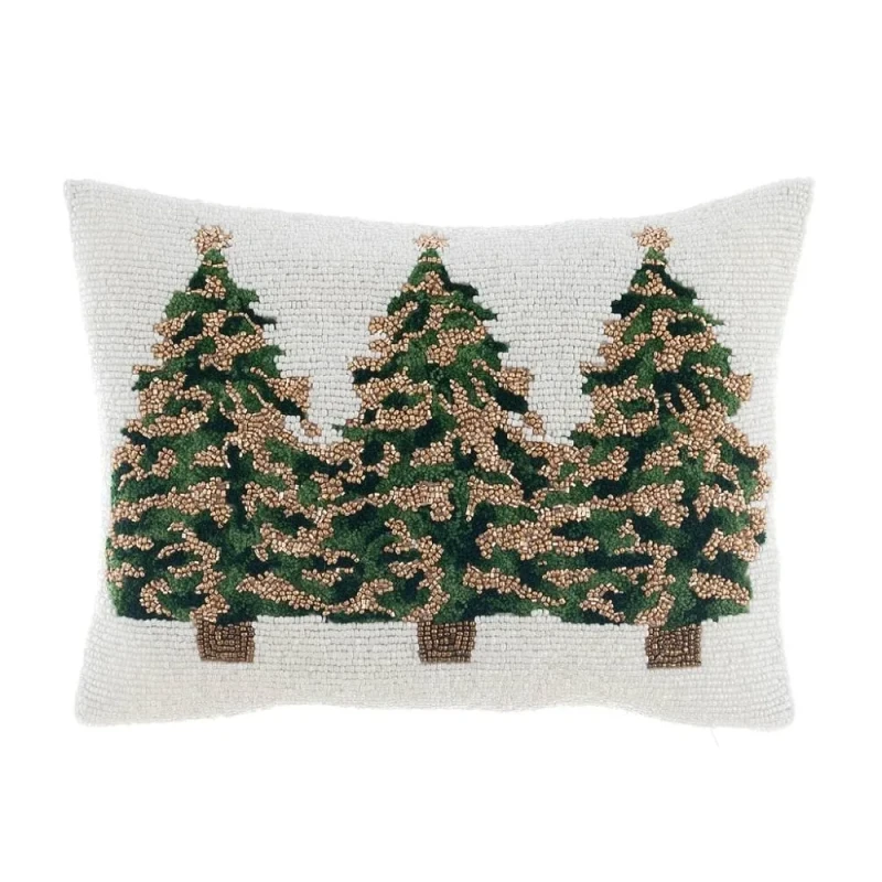 Blanc MariClò - Cuscino Alberi di Natale con Perline - 25 x 35 cm