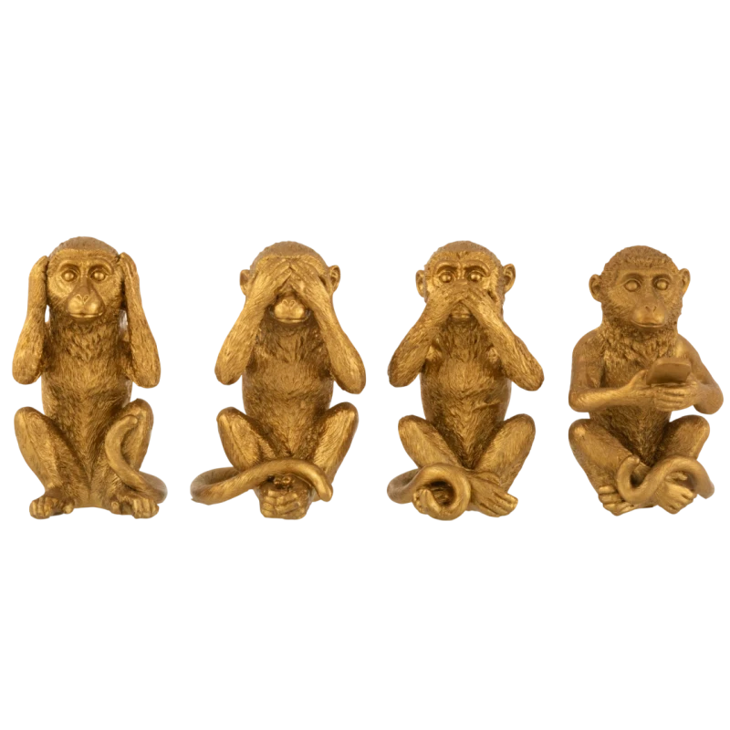Set 4 Pezzi Scimmia Sentire / Vedere / Parlare / Cellulare - Oro