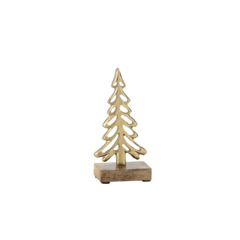Porta eleganza e raffinatezza alle tue decorazioni natalizie con la decorazione Albero + Piede, un oggetto decorativo che unisce il fascino del metallo dorato con la naturalezza del legno. La scelta ideale per chi cerca uno stile sobrio ma d’effetto. Realizzato in alluminio color oro con base in legno, il design minimalista lo rende un soprammobile versatile, perfetto per decorare tavoli, scrivanie, mensole o scaffali interni. Non adatto all’uso esterno, mantiene intatta la sua brillantezza negli ambienti domestici, diventando un elegante punto focale delle tue feste.