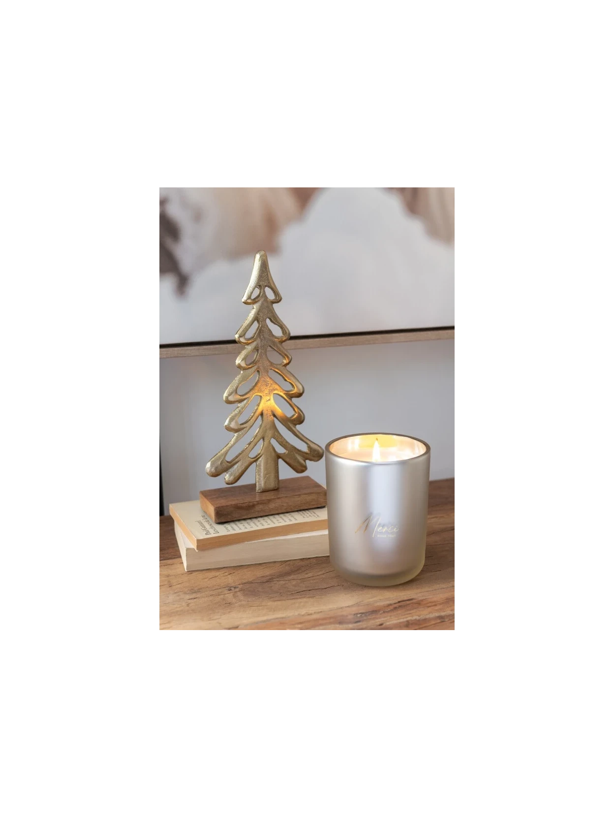 Illumina i tuoi interni con l’Albero + Piede realizzato in alluminio dorato e base in Legno. Un complemento d’arredo elegante e moderno, perfetto come decorazione natalizia per mensole, tavoli o scaffali.