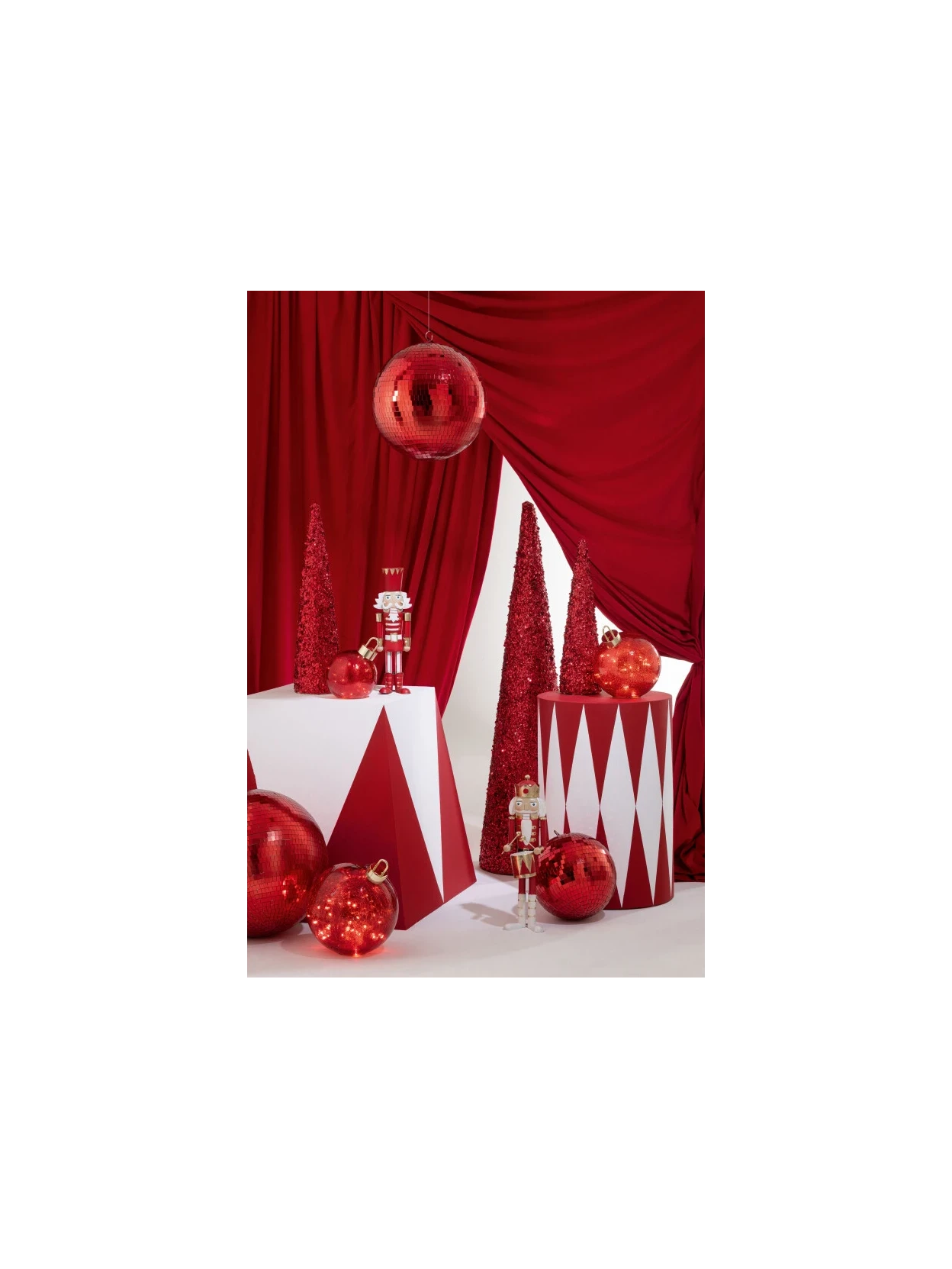 Porta la magia delle feste nei tuoi spazi con questo cono con paillettes Rosso, una decorazione scenografica alta 120 cm che unisce imponenza e luminosità. Realizzato in schiuma leggera rivestita di paillettes rosse, cattura e riflette la luce regalando un effetto brillante e festoso. Il suo design a cono scintillante lo rende un elemento d’arredo perfetto per salotti, ingressi, vetrine, showroom o hall di hotel, dove diventa subito protagonista. Il colore rosso Natale, intenso e luminoso, aggiunge calore e un tocco tradizionale, rendendolo ideale per allestimenti natalizi eleganti e suggestivi.