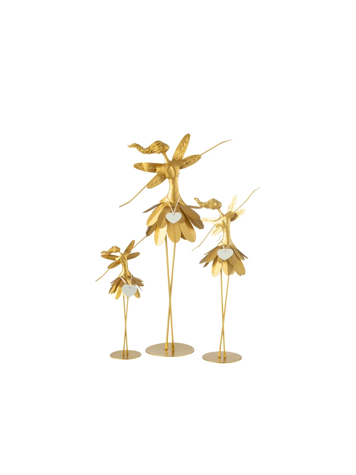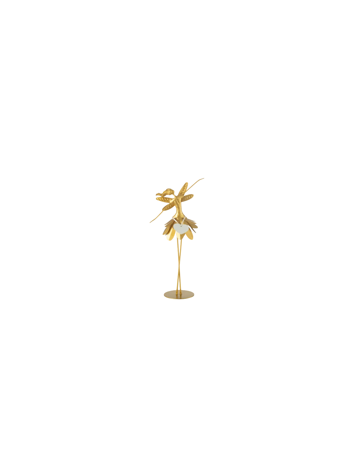 Porta un tocco di magia e raffinatezza nei tuoi ambienti con la decorazione Fata Cuore. Realizzata in metallo dorato, questa scultura combinao leggerezza, resistenza e design raffinato, perfetta per impreziosire salotti, ingressi, mensole, consolle o vetrine. La silhouette stilizzata della fata e del cuore dona un effetto romantico e moderno, rendendo ogni pezzo un complemento d’arredo elegante e versatile. La versione piccola, compatta e leggera (0,27 kg), è ideale per spazi ridotti o per creare composizioni con più elementi, mentre la grande, imponente e scenografica (0,9 kg), diventa un vero protagonista di qualsiasi allestimento.