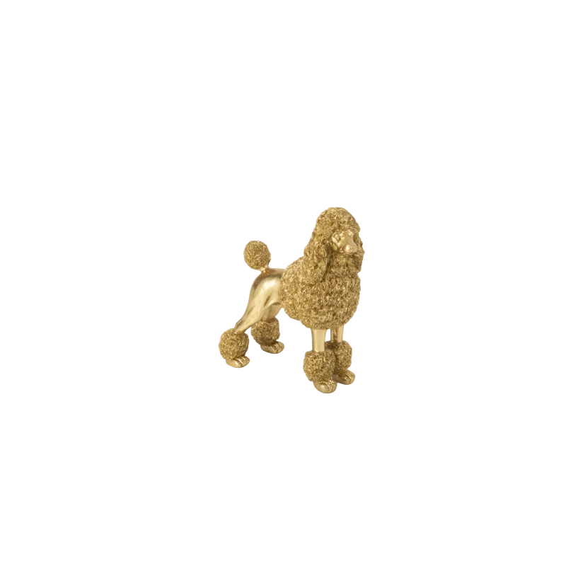 Le figura rappresenta il barboncino in piedi, donando movimento e personalità alla decorazione, mentre la finitura oro conferisce luce e stile, rendendo le sculture adatte sia a contesti moderni che classici. Non è adatta per uso esterno, ma rappresenta un complemento d’arredo elegante e sofisticato, ideale per chi desidera aggiungere fascino e carattere a qualsiasi ambiente interno.