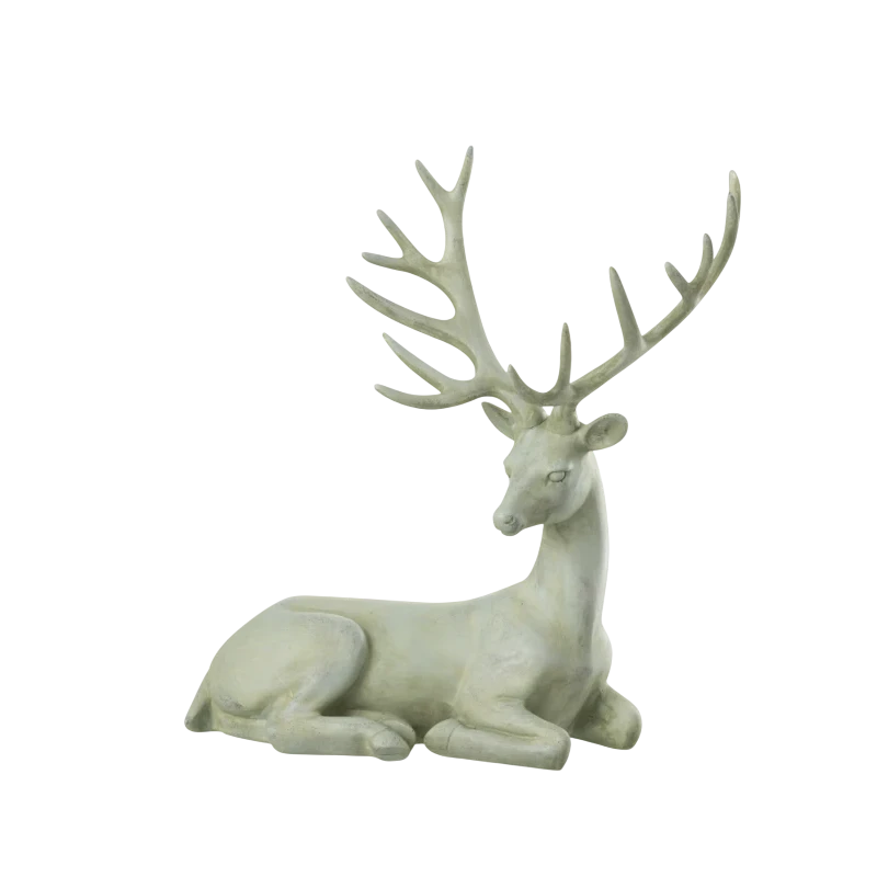 Porta un tocco di eleganza e raffinatezza nei tuoi ambienti con questa decorazione che raffigura un cervo disteso; una scultura in poliresina alta 29 cm. Realizzata in poliresina con finitura effetto polvere di calce, questa decorazione unisce leggerezza (0,62 kg) e resistenza, diventando ideale per mensole, tavoli, consolle o librerie.