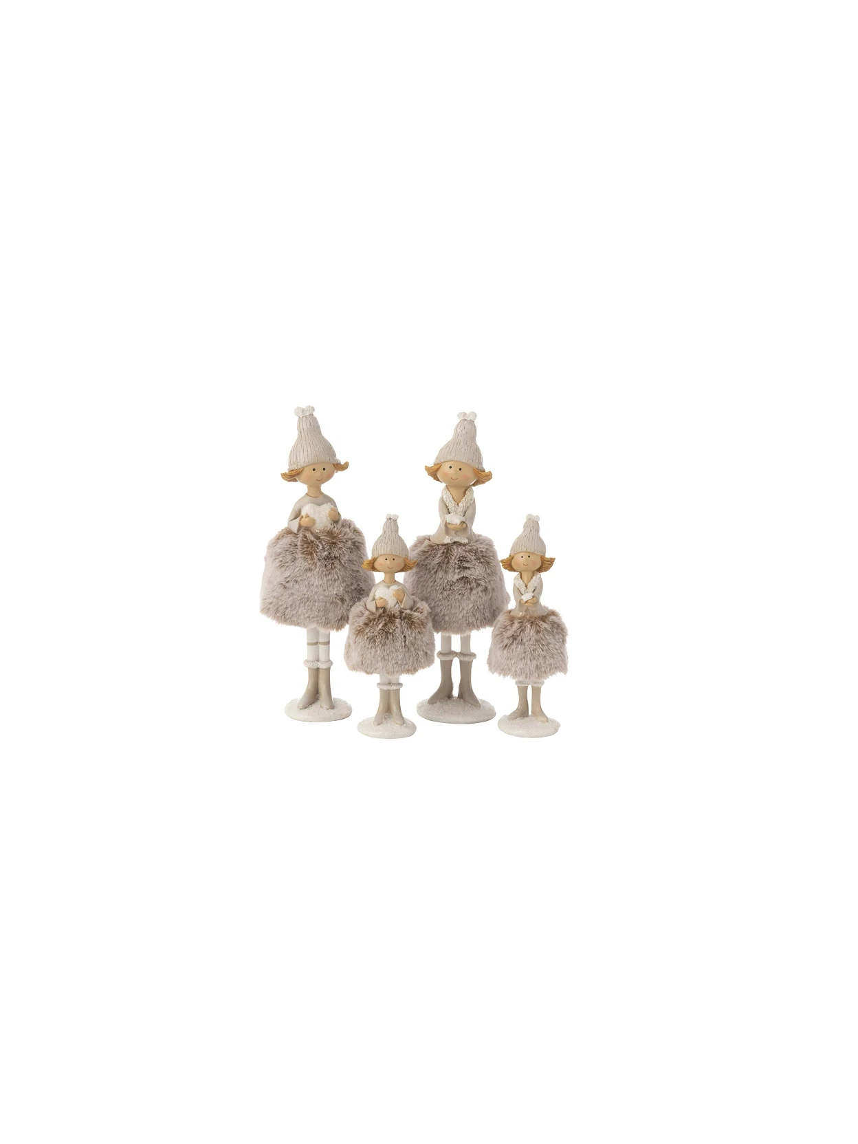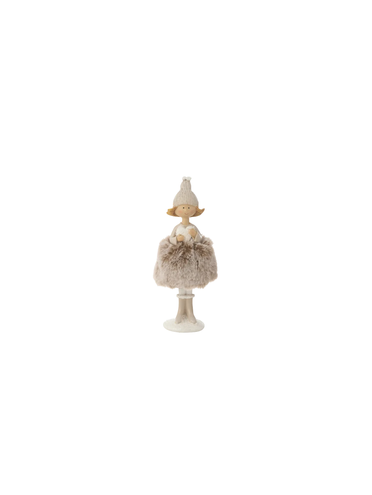 Un’elegante decorazione che ritrae un angelo con un cuore tra le mani, simbolo di amore e protezione. Il suo vestito in pelliccia regala un aspetto raffinato e accogliente, rendendolo un elemento decorativo ideale per ambienti interni. Questa figura è proposta in due dimensioni differenti, così da adattarsi a ogni spazio: dalle superfici più piccole, come mensole e comodini, fino a tavoli e vetrine più ampie. Grazie ai dettagli curati e al design armonioso, l’angelo con cuore e abito in pelliccia diventa un complemento d’arredo capace di trasmettere calore ed eleganza, perfetto anche come idea regalo.