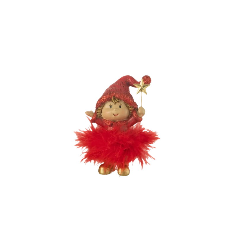 Bambino con berretto con stella natalizia realizzato in poliresina, con dettagli rosso e oro. Un delizioso decoro che aggiunge calore e magia alle tue feste. Disponibile in due misure assortite.
