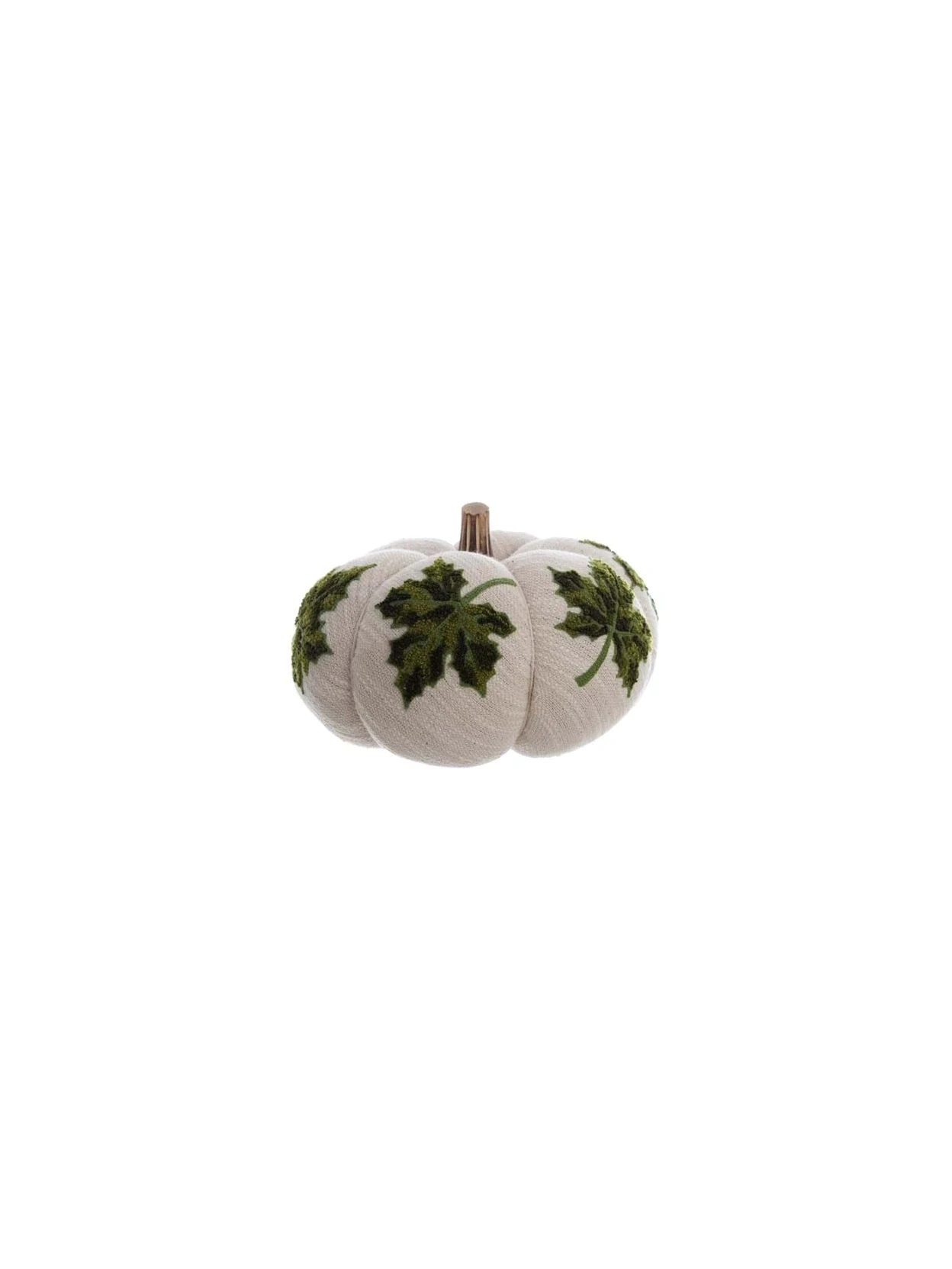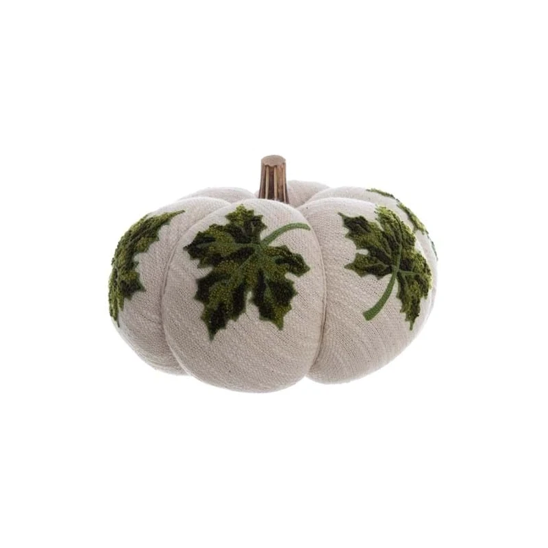 Parte della raffinata collezione “Zucche di Sogno” firmata Blanc Mariclò, questa zucca decorativa in tessuto unisce il fascino naturale dei materiali all’eleganza artigianale tipica del brand. Realizzata in 100% poliestere, presenta una texture a maglia in tonalità panna che conferisce un aspetto caldo e avvolgente, mentre le foglie ricamate in rilievo verde scuro aggiungono profondità e realismo alla composizione. Il gambo marrone effetto legno completa con armonia il design, evocando la bellezza autentica della stagione autunnale. Perfetta per centrotavola, composizioni stagionali o angoli decorativi, questa zucca porta in casa un’atmosfera accogliente e sofisticata, ideale per chi ama lo stile country chic e i dettagli curati.