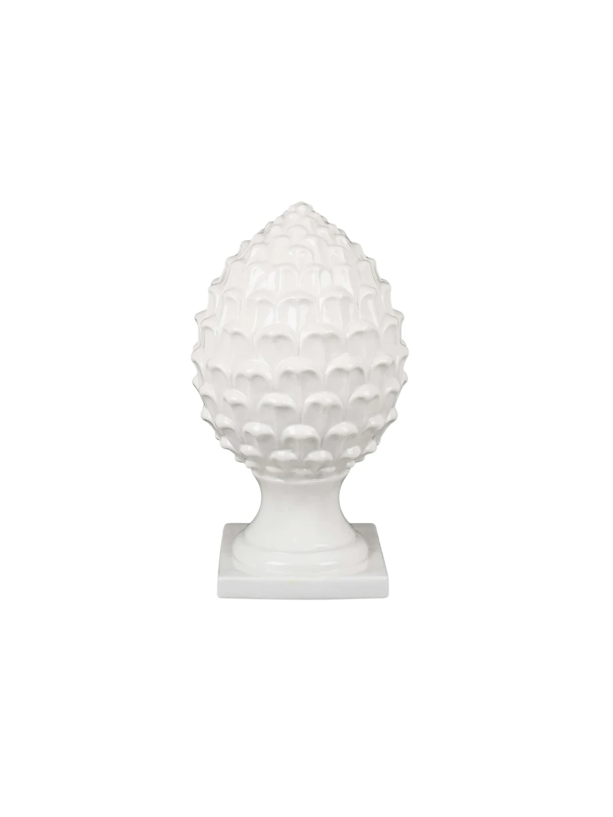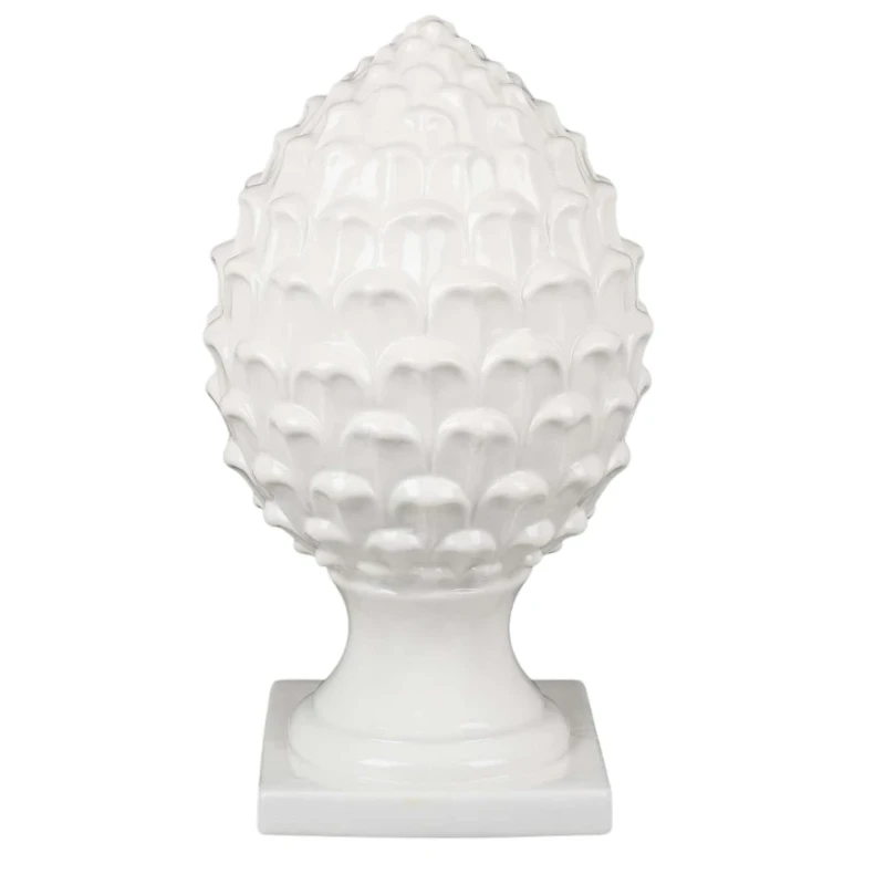 Pigna in porcellana bianca firmata Henriette, elegante decorazione alta 30 cm. Perfetta da sola o da abbinare ad altri oggetti per un effetto raffinato.