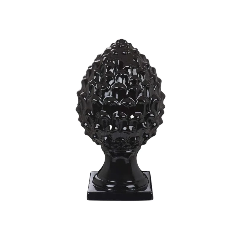 La pigna Henriette in porcellana nera lucida è un raffinato elemento decorativo, disponibile nelle altezze di 20, 24 e 30 cm. Ideale come oggetto decorativo singolo o abbinato ad altri pezzi della collezione, aggiunge un tocco di eleganza e modernità a tavoli, mensole o caminetti. La finitura lucida esalta il design semplice ma sofisticato, rendendo questa pigna perfetta per decorazioni moderne, decorazioni stagionali o come regalo unico. Scoprila da sola o abbinala ad altri pezzi per un effetto ancora più scenografico.