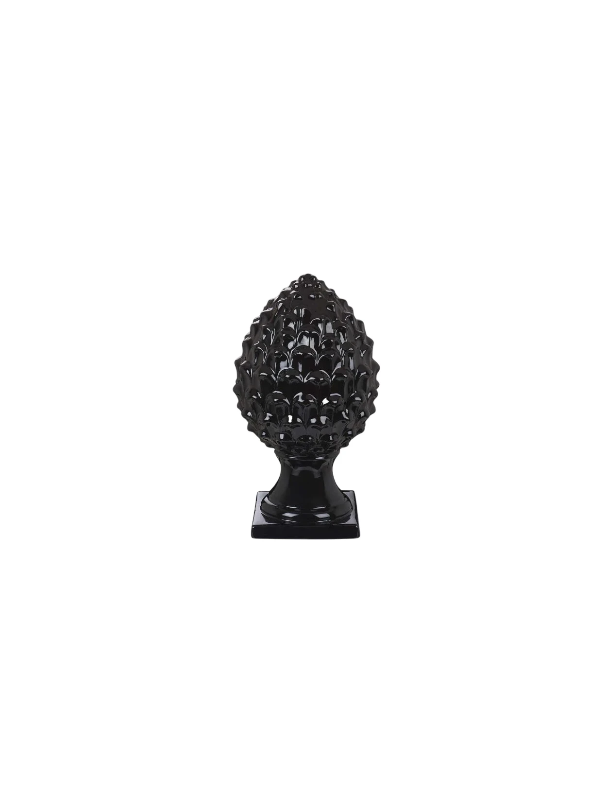 Pigna in porcellana nera lucida firmata Henriette, disponibile nelle altezze di 20, 24 e 30 cm. Perfetta da sola o in set per un elegante effetto decorativo.