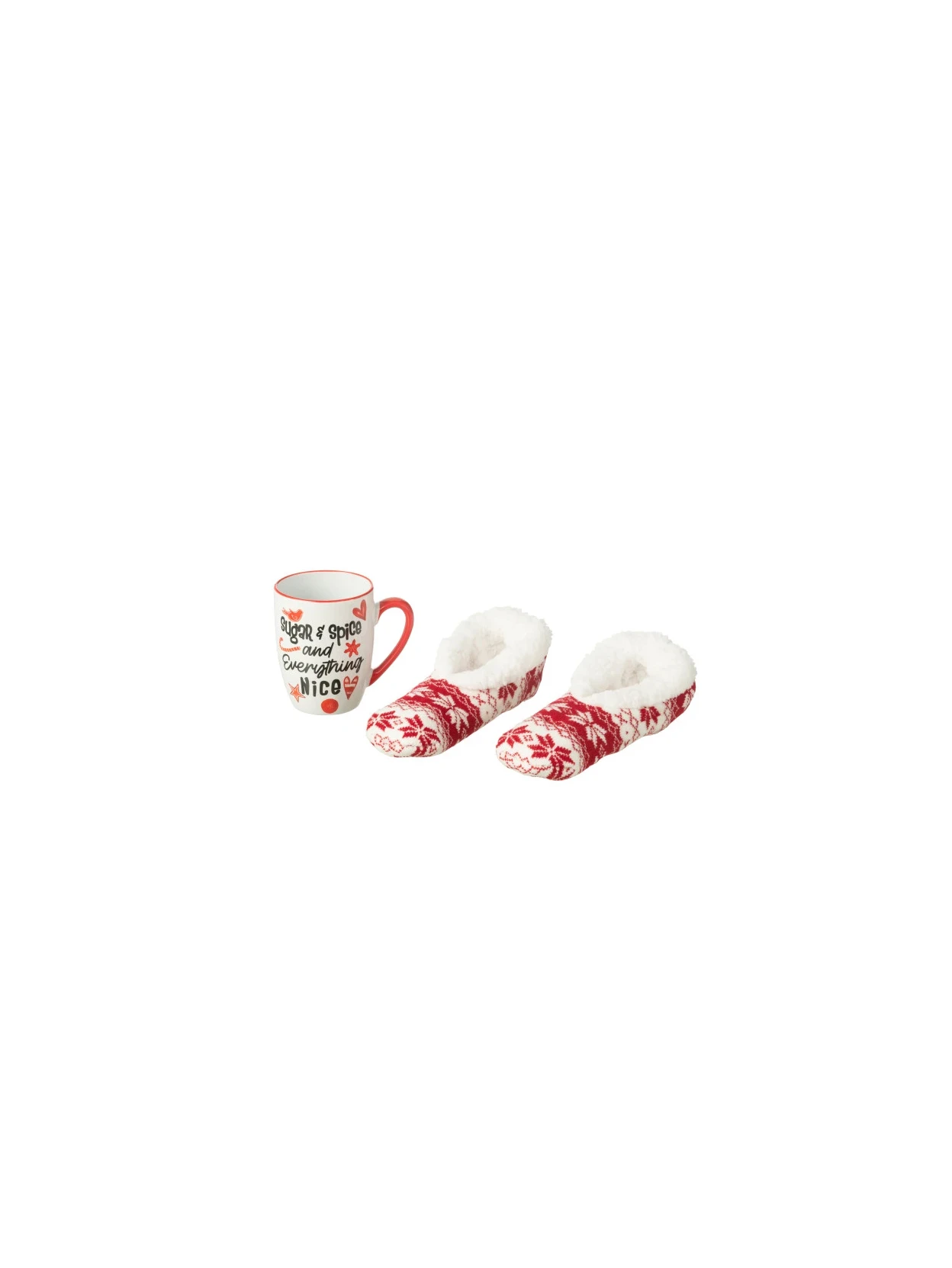 Tazza mug in ceramica rossa con calze natalizie in scatola regalo. Elegante e pratica, perfetta per sorseggiare bevande calde e sorprendere con un regalo originale.