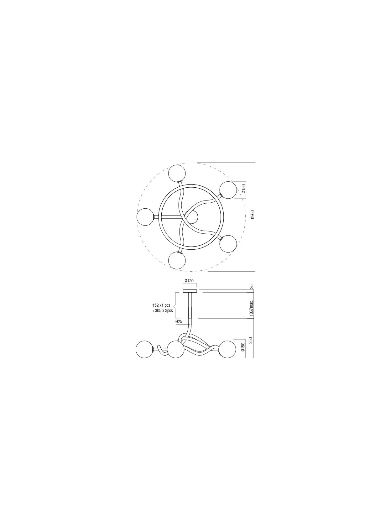 5 Diffusori Ø 96 x H 35 / 106.7 cm max attacco E14 5 x 28W max
