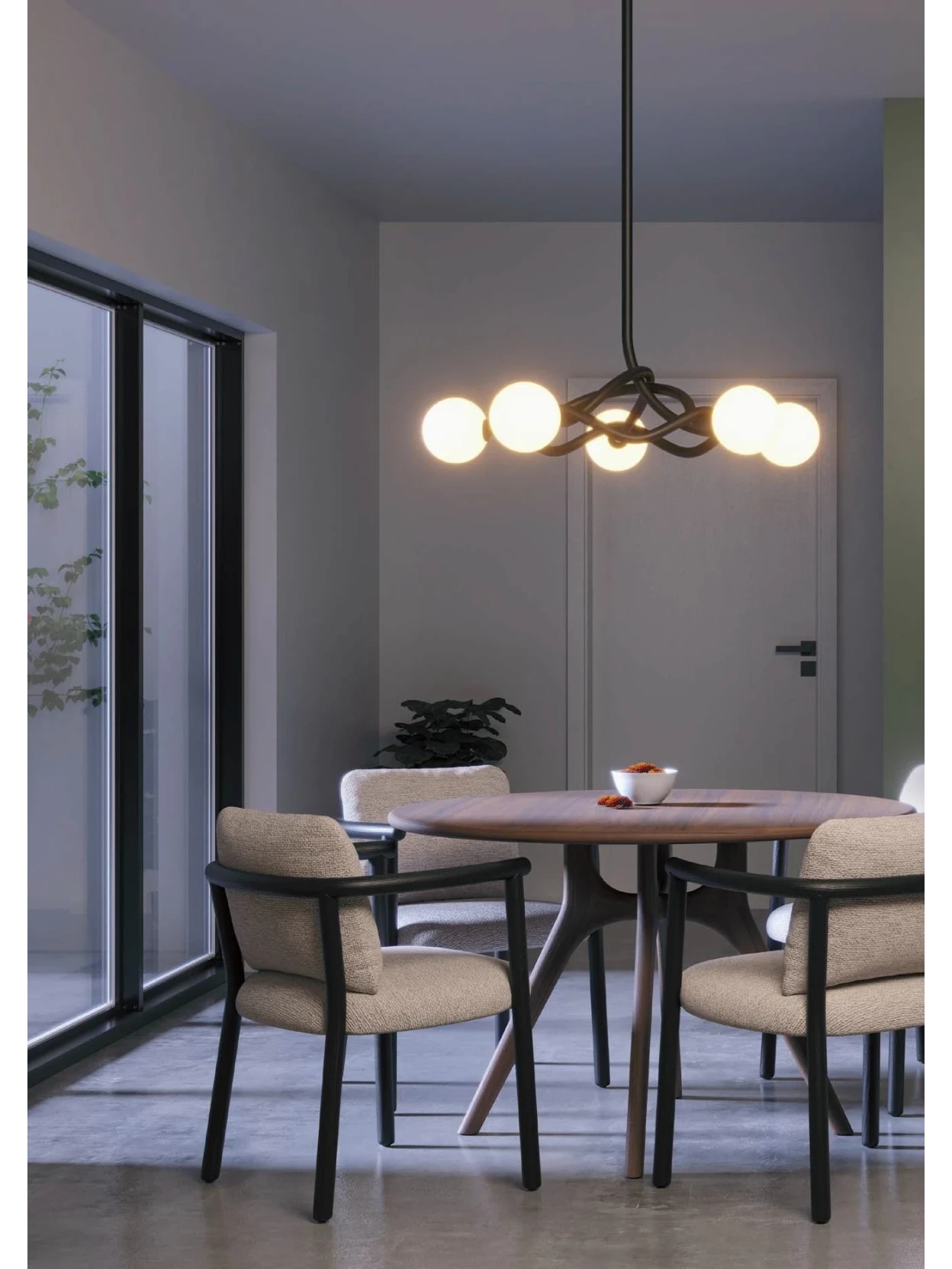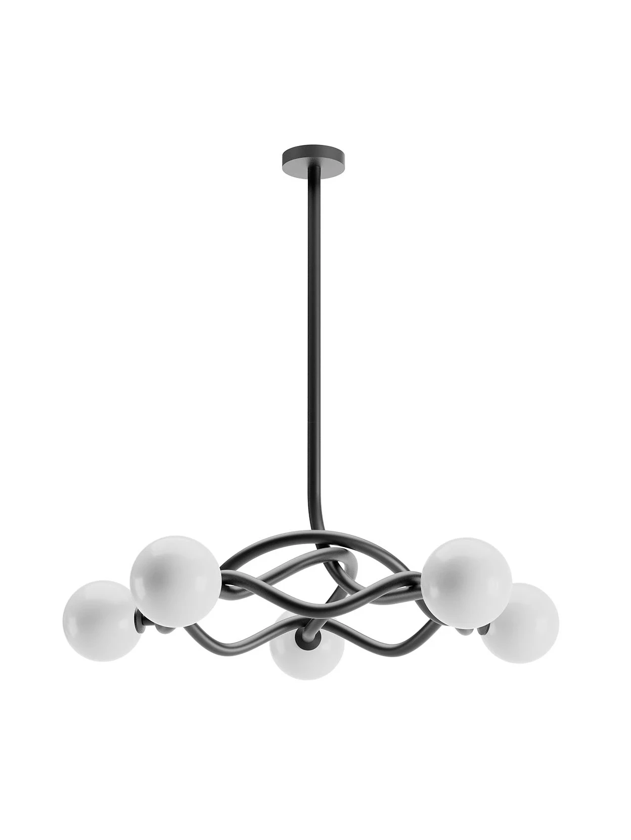 Confusio di Redo Group è una lampada a sospensione elegante adatta ad ambienti interni. Caratterizzata da una struttura in metallo verniciato nero opaco che accoglie 3 o 5 diffusori sferici realizzati in vetro soffiato bianco opalino. Una soluzione luminosa discreta ma d’effetto, ideale per valorizzare ingressi, corridoi e zone living.