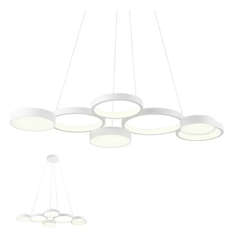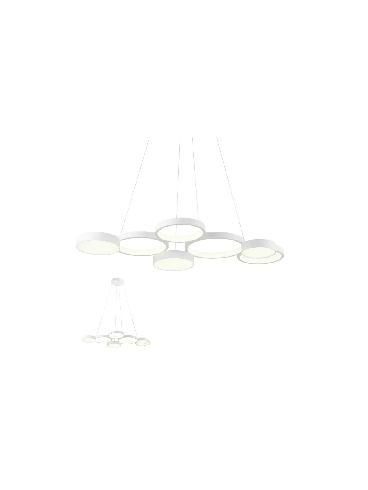 Cronos di Redo Group è una lampada a sospensione per interni con luce indiretta, struttura in alluminio verniciato bianco opaco e diffusori in acrilico satinato. Ideale per ambienti moderni e luminosi. LED SMD integrati, dimmerazione 3 step, temperatura colore 3000K, CRI 90, IP20, Classe I, alimentazione 220–240V.