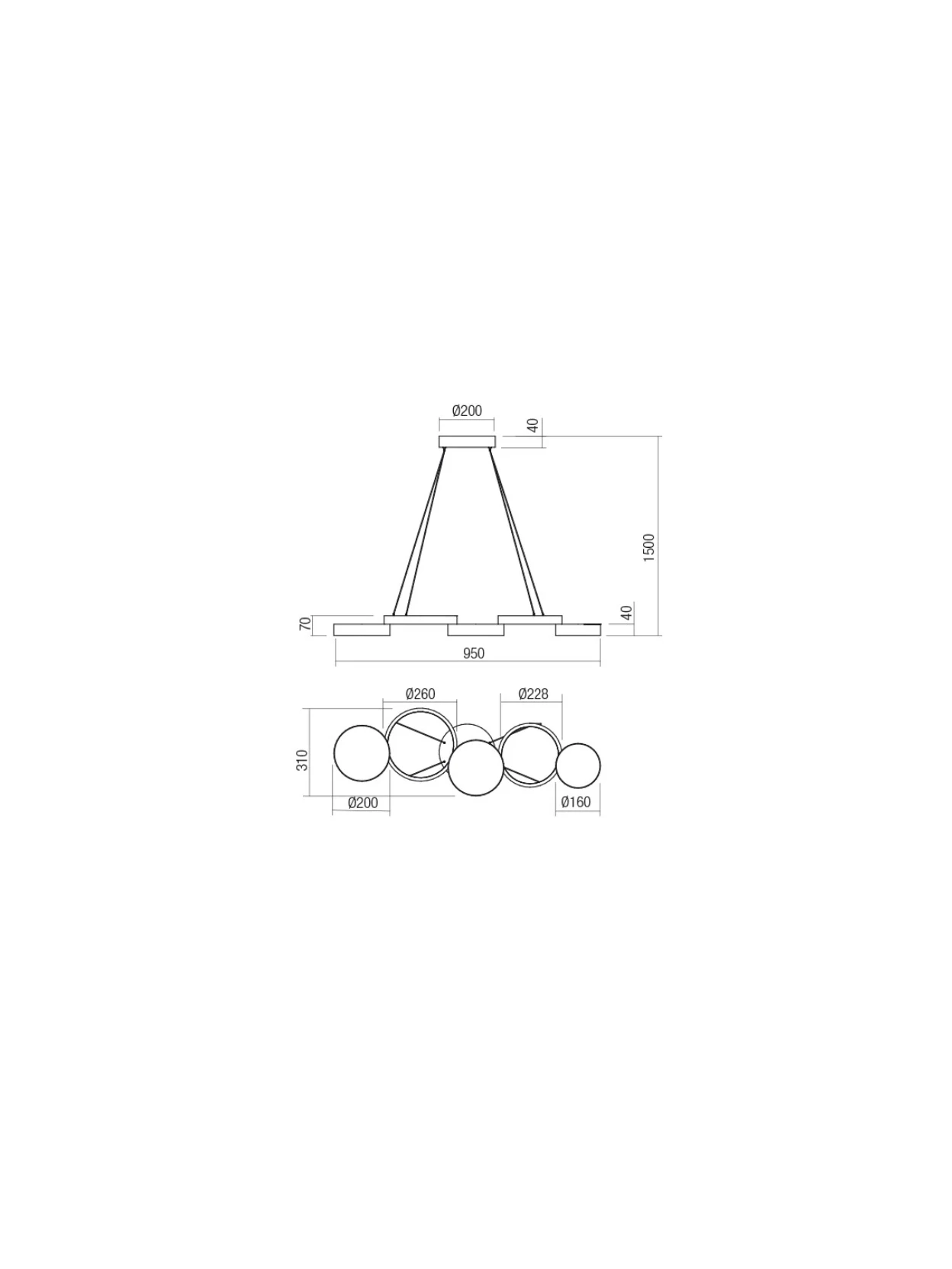 Cronos di Redo Group è una lampada a sospensione per interni con luce indiretta, struttura in alluminio verniciato bronzo e diffusori in acrilico satinato. Ideale per ambienti moderni e luminosi. LED SMD integrati, dimmerazione 3 step, temperatura colore 3000K, CRI 90, IP20, Classe I, alimentazione 220–240V.