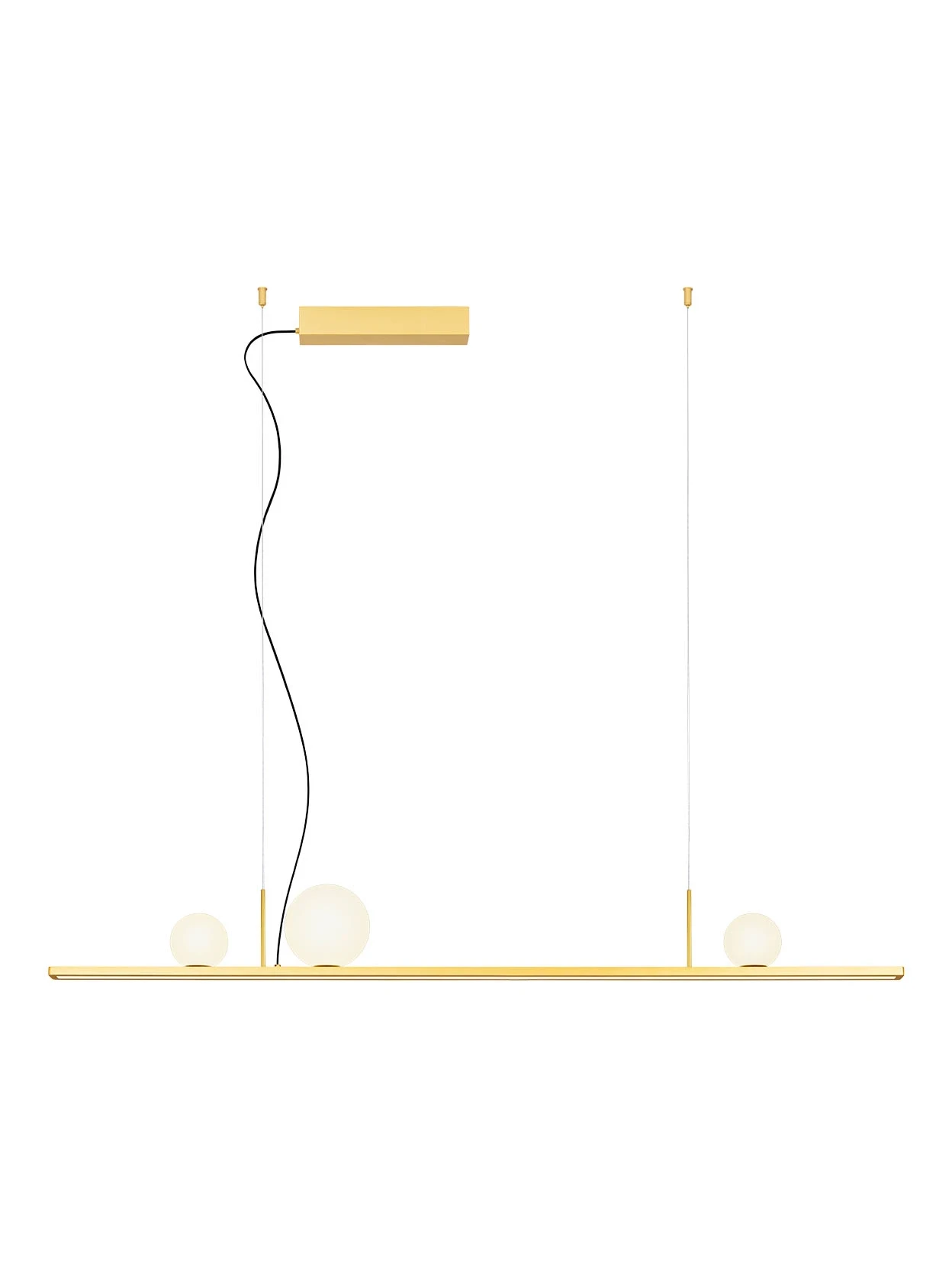 La lampada a sospensione Dune è una soluzione d’illuminazione di grande impatto estetico, pensata per interni moderni ed eleganti. La struttura in alluminio estruso con finitura ottone dorato opaco si abbina a un diffusore in policarbonato bianco opalino che emette luce diretta e a tre sfere in vetro soffiato bianco opalino per una luce ambientale soffusa. La sospensione integra LED SMD e COB dimmerabili tramite controllo TRIAC, con temperature colore selezionabili tra 2700K e 3000K, garantendo prestazioni luminose elevate e una resa cromatica naturale (CRI ≥90). Disponibile nelle versioni da 120 cm (40W) e 150 cm (48W), offre un’illuminazione versatile capace di valorizzare soggiorni, sale da pranzo e spazi contract. La lampada Dune combina eleganza materica, tecnologia LED avanzata e distribuzione luminosa intelligente, trasformando ogni ambiente in uno spazio accogliente e di design.