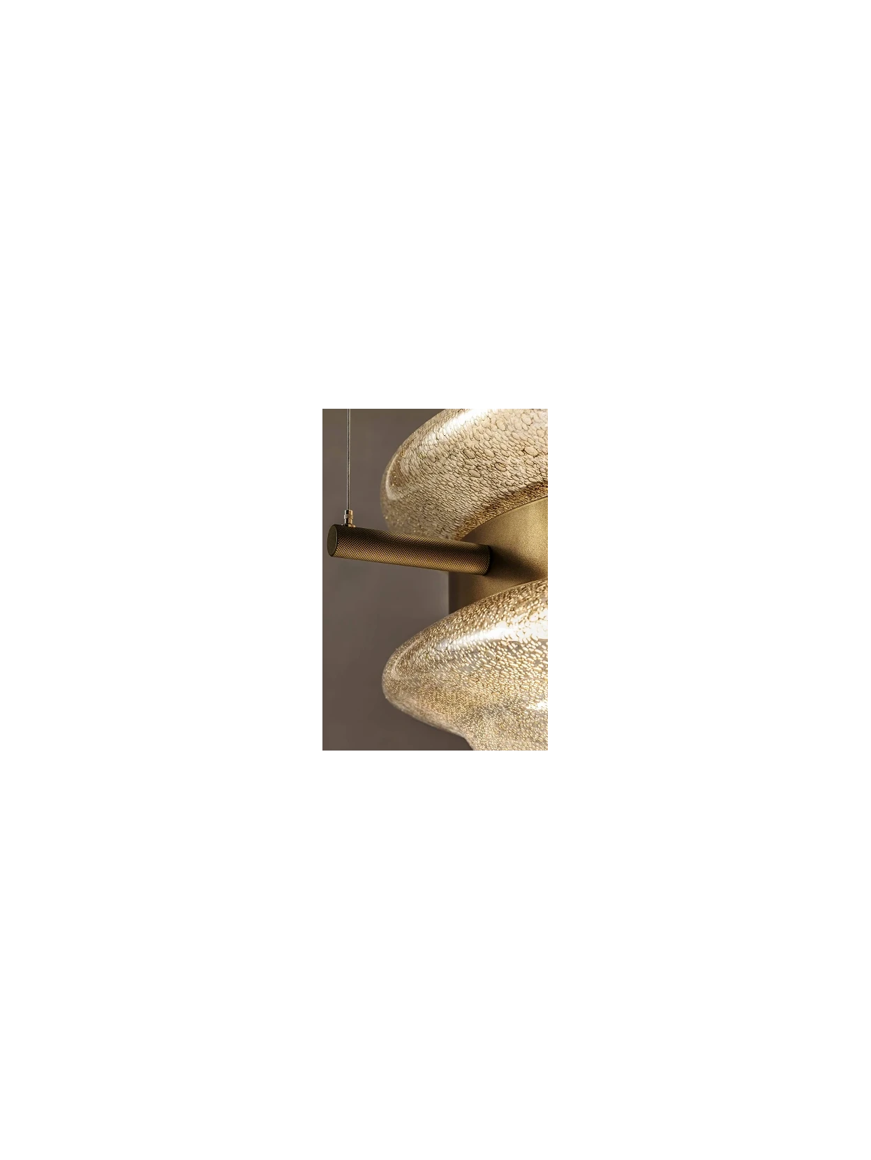 Baryon di Olev è una lampada in ferro, alluminio e vetro soffiato a bocca, disponibile in 2700K e 3000K con LED ad alto rendimento e CRI >90. Potenza 2×37W e luminosità fino a oltre 5500 lm per una luce intensa, elegante e naturale.