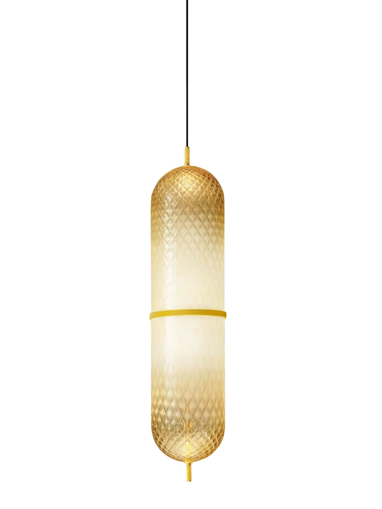 La lampada Curuba Combo di Olev trasforma il vetro in un materiale sorprendentemente morbido grazie alla lavorazione Balloton, che crea una texture elegante simile a un tessuto imbottito. La luce avvolgente e la cura dei dettagli Made in Italy rendono questa sospensione un elemento di design capace di catturare subito lo sguardo e valorizzare qualsiasi ambiente con stile contemporaneo.