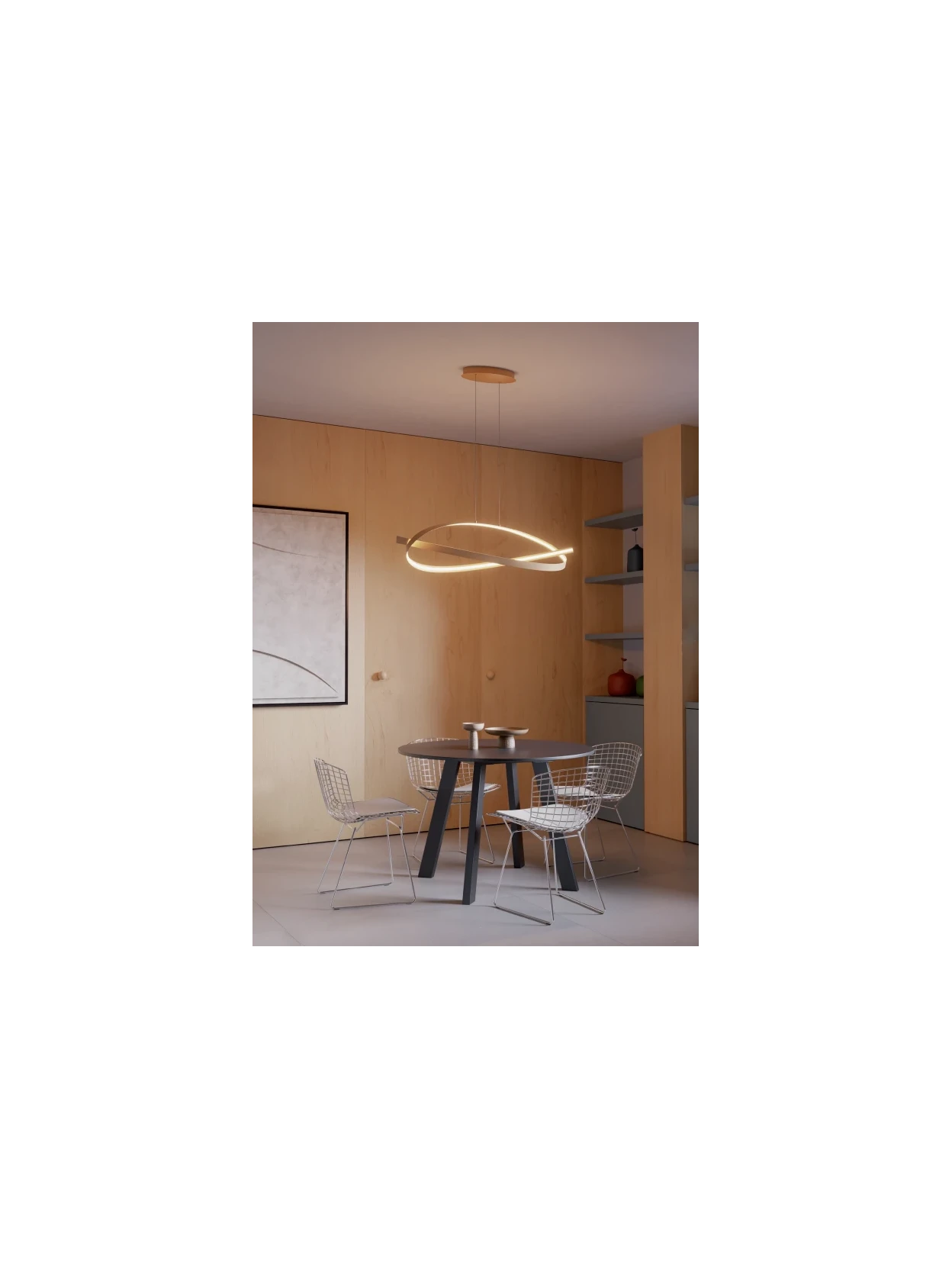Impuls di Redo Group è una lampada a sospensione circolare dallo stile essenziale e moderno. La struttura è in metallo e alluminio oro opaco con diffusore in PVC satinato. Dotata di LED SMD 2835 ad alta efficienza (840 pcs), offre una luce calda a 3000K con flusso luminoso di 2660 lm e potenza di 38W. Dimmerabile a 3 step, è perfetta per creare atmosfere accoglienti e ben illuminate in ogni ambiente.